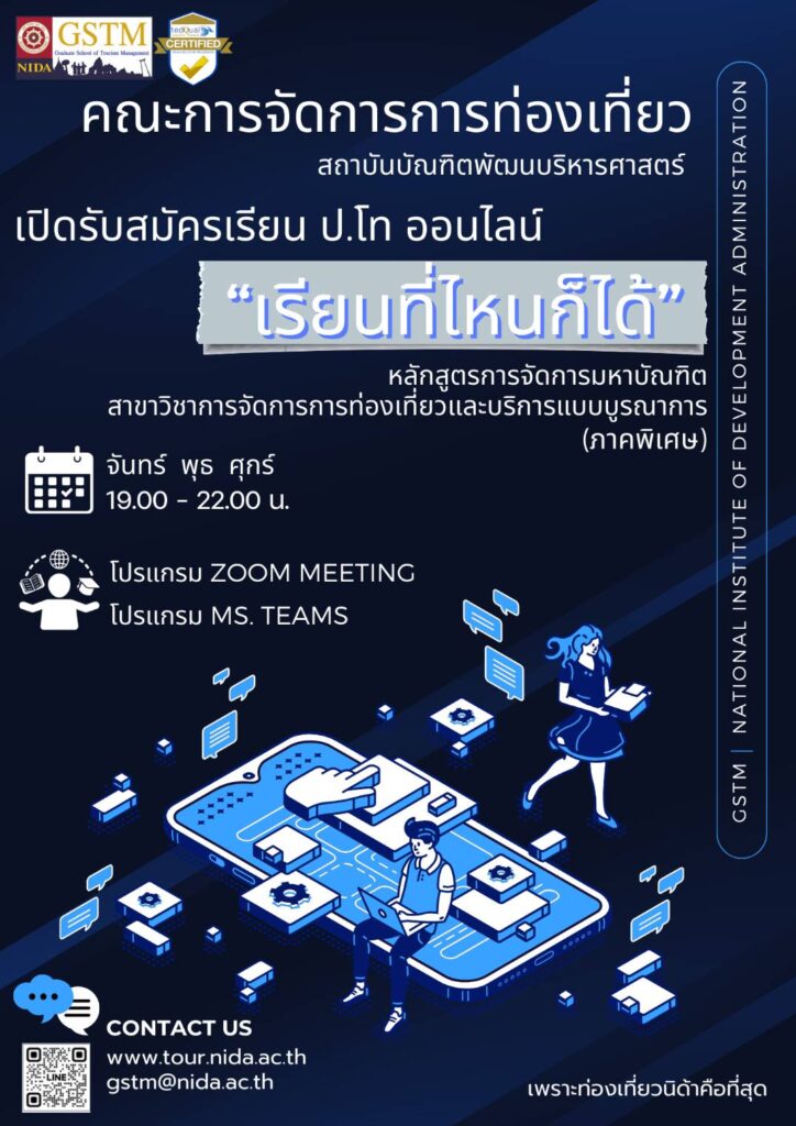 คณะการจัดการการท่องเที่ยวNIDA เปิดรับสมัครเรียนต่อปริญญาโท ออนไลน์ ภาคพิเศษ