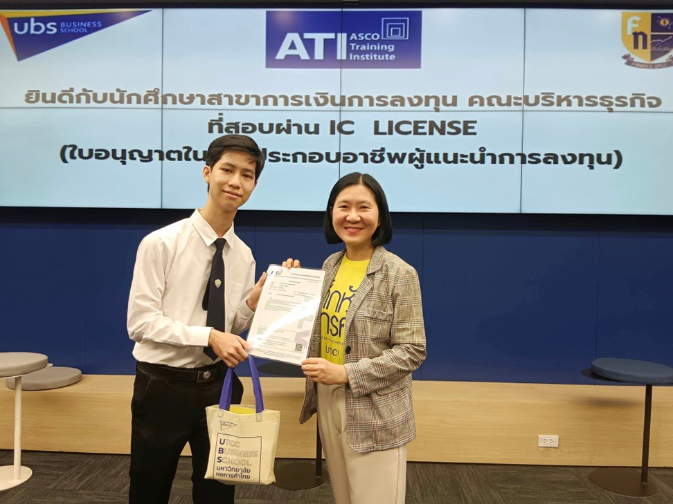 EZ Webmaster June 17, 2024 EZ Webmaster June 17, 2024 สุดเจ๋ง ! น.ศ.สาขาการเงิน คณะบริหารธุรกิจ ม.หอการค้า สอบผ่านใบอนุญาตผู้แนะนำการลงทุนด้านหลักทรัพย์ ปัจจุบันสิ่งสำคัญที่ผู้แนะนำการลงทุนต้องมี คือ ใบอนุญาตผู้แนะนำการลงทุน IC License ผู้ที่มีใบอนุญาตสำหรับแนะนำผลิตภัณฑ์ที่เกี่ยวข้องกับการลงทุน ถือเป็นใบอนุญาตที่สำนักงานคณะกรรมการกำกับหลักทรัพย์และตลาดหลักทรัพย์ หรือ ก.ล.ต. มอบให้ โดยได้รับความเห็นชอบเป็น IC จาก ก.ล.ต. ได้รับแต่งตั้งให้ปฏิบัติหน้าที่จากต้นสังกัดที่เป็นผู้ประกอบธุรกิจหลักทรัพย์ ซึ่งถือได้ว่าเป็นใบรองรับการทำงานสำหรับอาชีพทางการเงิน ซึ่งผู้แนะนำจะต้องมีความรู้และการแนะนำที่ถูกต้อง ที่สำคัญด้านความน่าเชื่อถือและความไว้ใจในการใช้บริการ ล่าสุดสาขาการเงินการลงทุน คณะบริหารธุรกิจสนับสนุนให้นักศึกษาชั้นปีที่ 1 – ชั้นปีที่ 2 ผู้ที่มีความสนใจร่วมลงสอบใบอนุญาตผู้แนะนำการลงทุน IC License นักศึกษาสามารถสอบผ่านทั้งหมด 11 คน เพื่อให้นักศึกษาได้เรียนรู้การสอบและนำความรู้ต่าง ๆ ในห้องเรียนมาประยุกต์ใช้ในการสอบครั้งนี้ เพิ่มศักยภาพการทำงานด้านเงินการลงทุน ได้มีประสบการณ์การเรียนรู้จริง เมื่อนักศึกษาเรียนจบระดับชั้นปริญญาตรีประกอบกับใบอนุญาตที่สอบผ่าน สามารถประกอบอาชีพผู้แนะนำการลงทุน ซึ่งเป็นใบอนุญาตที่สำนักงานคณะกรรมการกำกับหลักทรัพย์และตลาดหลักทรัพย์ (ก.ล.ต.) มอบให้กับบุคคลที่ได้รับอนุญาตให้ทำหน้าที่แนะนำหรือชักชวนให้ผู้ลงทุนซื้อขายหลักทรัพย์ หรือสัญญาซื้อขายล่วงหน้า ทั้งนี้ผู้ที่จะประสงค์จะทำหน้าที่ให้บริการดังกล่าวกับลูกค้าหรือผู้ที่สนใจ จะต้องได้รับความเห็นชอบเป็น IC จาก ก.ล.ต. และต้องได้รับแต่งตั้งให้ปฏิบัติหน้าที่จากต้นสังกัดที่เป็นผู้ประกอบธุรกิจหลักทรัพย์ กลุ่มวิชาการเงินการลงทุน คณะบริหารธุรกิจ มหาวิทยาลัยหอการค้าไทย มุ่งเน้นเกี่ยวกับการบริหารการเงินและการลงทุน เจาะลึกถึงการวางแผนทางการเงินขององค์กรหรือภาคธุรกิจ ซึ่งเป็นหัวใจสำคัญในการพัฒนาธุรกิจให้ยั่งยืน และเจาะลึกเกี่ยวกับการลงทุน การบริหารความเสี่ยง เทคโนโลยีทางการเงินใหม่ๆ การจัดสรรเงินทุนในการลงทุนอย่างมีประสิทธิภาพ รวมทั้งได้เรียนรู้ถึงการบริหารงานของสถาบันการเงินและตลาดหลักทรัพย์ซึ่งเป็นที่ได้รับความสนใจอย่างมากในสายอาชีพการเงินการลงทุนนี้ และได้ลงมือปฏิบัติจริงในการลงทุนแบบจำลองต่างๆ ได้เรียนรู้และนำไปพัฒนาต่อยอดในสายงานที่ปรึกษาทางการเงินได้อย่างมีประสิทธิภาพ