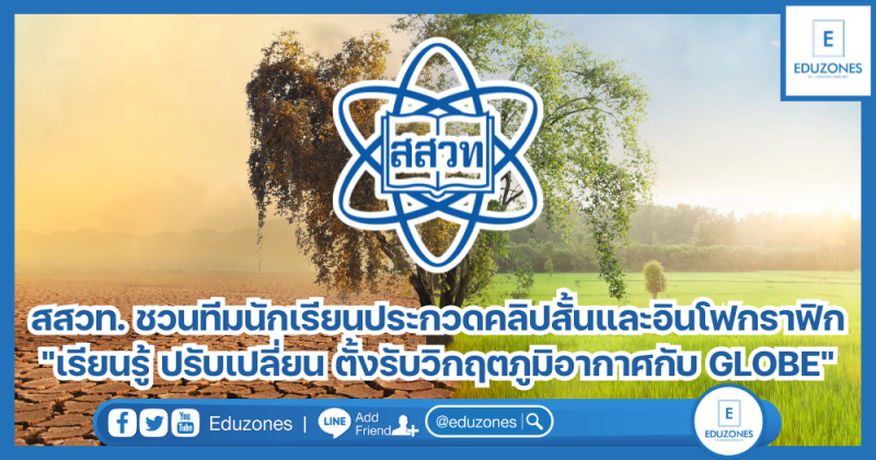 EZ Webmaster June 26, 2024 EZ Webmaster June 26, 2024 สสวท. ชวนทีมนักเรียนประกวดคลิปสั้นและอินโฟกราฟิก “เรียนรู้ ปรับเปลี่ยน ตั้งรับวิกฤตภูมิอากาศกับ GLOBE” สถาบันส่งเสริมการสอนวิทยาศาสตร์และเทคโนโลยี (สสวท.) โครงการโลกศึกษาเพื่อพัฒนาสิ่งแวดล้อม (GLOBE) เชิญนักเรียนประถมศึกษาปีที่ 4 – มัธยมศึกษาปีที่ 6 ส่งคลิปวีดิโอสั้นความยาวไม่เกิน 5 นาที และอินโฟกราฟิก (Infographic) ร่วมประกวด GLOBE Student Challenge Award ประจำปี 2567 หัวข้อ GLOBE Climate Change Learning Activities in School “เรียนรู้ ปรับเปลี่ยน ตั้งรับวิกฤตการเปลี่ยนแปลงภูมิอากาศกับ GLOBE” เข้าร่วมประกวดชิงรางวัลพร้อมเกียรติบัตร ผู้สมัครประกอบด้วยทีมนักเรียนตั้งแต่ 5 คนแต่ไม่เกิน 50 คน ต่อทีม กําลังศึกษาอยู่ในชั้นประถมศึกษาปีที่ 4 ถึง มัธยมศึกษาปีที่ 6 และครูที่ปรึกษา 1 – 2 คน ต่อทีม สมัครและส่งผลงานได้ตั้งแต่บัดนี้ถึง 21 กรกฎาคม 2567 ดูรายละเอียดเพิ่มที่เว็บไซต์ ฝ่ายโลกศึกษาเพื่อพัฒนาสิ่งแวดล้อม (GLOBE) สสวท. https://globethailand.ipst.ac.th/news.php เฟซบุ๊ก https://www.facebook.com/GLOBEThailandOfficial ดาวน์โหลดคู่มือประกวดที่ https://citly.me/JjdrQ สอบถามที่อีเมล globe@proj.ipst.ac.th หรือเฟซบุ๊ก GLOBE Thailand