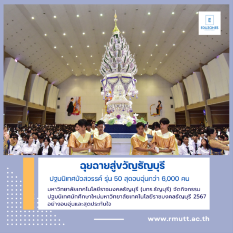 tui sakrapee June 19, 2024 ฉุยฉายสู่ขวัญธัญบุรี ปฐมนิเทศบัวสวรรค์ รุ่น 50 สุดอบอุ่นกว่า 6,000 คน tui sakrapee June 19, 2024 มหาวิทยาลัยเทคโนโลยีราชมงคลธัญบุรี (มทร.ธัญบุรี) จัดกิจกรรมปฐมนิเทศนักศึกษาใหม่มหาวิทยาลัยเทคโนโลยีราชมงคลธัญบุรี 2567 จำนวนกว่า 6,000 คน แบ่งกิจกรรมการปฐมนิเทศเป็น 3 วัน สำหรับกิจกรรมวันปฐมนิเทศประกอบด้วย การกล่าวต้อนรับนักศึกษาใหม่ โดย รองศาสตราจารย์ ดร.สมหมาย ผิวสอาด รักษาการในตำแหน่งอธิการบดี มทร.ธัญบุรี ผู้บริหาร คณบดีคณะต่าง ๆ การให้ความรู้และการใช้ชีวิตในรั้ว มทร.ธัญบุรี โดยหน่วยงานต่าง ๆ ภายในมหาวิทยาลัย Show and share Rmutt alumni การเล่าเรื่องประสบการณ์ของศิษย์เก่า… Continue Reading