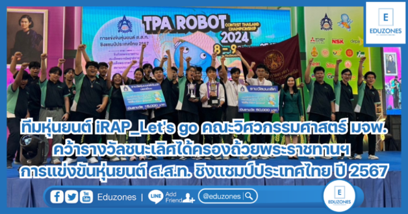 EZ Webmaster June 12, 2024 ทีมหุ่นยนต์ iRAP_Let’s go คณะวิศวกรรมศาสตร์ มจพ. คว้ารางวัลชนะเลิศได้ครองถ้วยพระราชทานฯ จากการแข่งขันหุ่นยนต์ ส.ส.ท. ชิงแชมป์ประเทศไทย ปี 2567 EZ Webmaster June 12, 2024 ทีมหุ่นยนต์ iRAP_Let’s go คณะวิศวกรรมศาสตร์ มหาวิทยาลัยเทคโนโลยีพระจอมเกล้าพระนครเหนือ (มจพ.) คว้ารางวัลชนะเลิศ ได้ครองถ้วยรางวัลพระราชทานสมเด็จพระกนิษฐาธิราชเจ้า กรมสมเด็จพระเทพรัตนราชสุดาฯ สยามบรมราชกุมารี และคว้ารางวัลหุ่นยนต์อัตโนมัติยอดเยี่ยม จากการแข่งขันหุ่นยนต์ ส.ส.ท. ชิงแชมป์ประเทศไทย ประจำปี 2567 ในเกมการแข่งขันวิถีข้าว วิถีไทย สู่วิถีสากล “HARVEST DAY” ณ ห้องไดมอนด์ ฮอลล์ ชั้น 5 ศูนย์การค้าเซียร์ รังสิต เมื่อวันที่ 8-9 มิถุนายน 2567… Continue Reading
