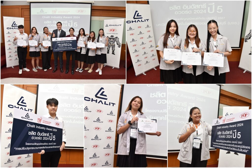 EZ Webmaster July 18, 2024 EZ Webmaster July 18, 2024 ชลิต อินดัสทรีฯ ร่วมกับ วิศวกรรมอุตสาหการ มจธ. มอบทุนวิจัยวิศวกรรมดีเด่น “ชลิต อินดัสทรี อวอร์ด” ปี 5 จัดขึ้นต่อเนื่องเป็นปีที่ 5 แล้วสำหรับโครงการ “ชลิต อินดัสทรี อวอร์ด 2024 (Chalit Industry Award 2024)”) มอบทุนวิจัยโครงงานปริญญานิพนธ์ดีเด่น ประจำปี 2567 โดยร่วมมือของภาควิชาวิศวกรรมอุตสาหการ คณะวิศวกรรมศาสตร์ มหาวิทยาลัยเทคโนโลยี พระจอมเกล้าธนบุรี (มจธ.) และบริษัท ชลิต อินดัสทรี จำกัด ผู้ผลิตและจัดจำหน่ายชิ้นส่วนประกอบรถยนต์และอะไหล่ยาง ภายใต้แบรนด์ “POP” เพื่อร่วมส่งเสริมและต่อยอดผลงานด้านงานวิจัยให้เกิดวิทยาการใหม่ๆทางด้านทฤษฎีและปฏิบัติ ร่วมพัฒนาบุคลากรด้านการศึกษาที่มีทักษะและความสามารถด้านงานวิจัย อีกทั้งยังเป็นการช่วยเสริมสร้างความภาคภูมิใจในการค้นคว้าและพัฒนางานวิจัยใหม่ๆที่มีศักยภาพในการนำไปพัฒนาต่อยอดสู่ภาคอุตสาหกรรมจริง ให้กับน้องๆคณะวิศวกรรมศาสตร์ อีกด้วย โดยจัดให้มีการนำเสนอผลงานและมอบทุนวิจัยโครงงานปริญญานิพนธ์ดีเด่น พร้อมใบประกาศเกียรติคุณฯ “ชลิต อินดัสทรี อวอร์ด 2024” ประจำปี 2567 ให้กับน้องๆนักศึกษาที่สำเร็จการศึกษาภาควิชาวิศวกรรมอุตสาหการ คณะวิศวกรรมศาสตร์ มหาวิทยาลัยเทคโนโลยีพระจอมเกล้าธนบุรี (มจธ.) โดยมี รศ.ดร.สุรวุฒิ ช่วงโชติ รองคณบดีฝ่ายวิชาการ คณะวิศวกรรมศาสตร์ มหาวิทยาลัยเทคโนโลยี พระจอมเกล้าธนบุรี (มจธ.) เป็นประธาน ร่วมด้วย นายชวิศ ยงเห็นเจริญ กรรมการผู้จัดการ และ นางมนัสนันท์ เปรมพุฒิพันธ์ กรรมการ บริษัท ชลิต อินดัสทรี จำกัด เป็นผู้มอบรางวัล ร่วมด้วย ดร.สมพร เพียรสุขมณี หัวหน้าภาควิชาวิศวกรรมอุตสาหการ คณะวิศวกรรมศาสตร์, ดร.ฐิตินันท์ มีทอง และ ผศ.ดร.พร้อมพงษ์ ปานดี อาจารย์ประจำภาควิชา ตลอดจนคณาจารย์ที่ปรึกษาโครงการ ร่วมแสดงความยินดี ณ ห้องประชุม ภาควิชาวิศวกรรมอุตสาหการ คณะวิศวกรรมศาสตร์ มจธ. รศ.ดร.สุรวุฒิ ช่วงโชติ กล่าวว่า โครงการฯนี้เป็นความร่วมมือที่ต่อเนื่องยาวนานเป็นปีที่ 5 แล้ว นอกจากจะเป็นขวัญและกําลังใจให้กับนักศึกษาแล้ว ยังช่วยทำให้ความร่วมมือของอาจารย์ในภาควิชาและภาคอุตสาหกรรมแน่นแฟ้นยิ่งขึ้น ขอแสดงความยินดีและชื่นชมนักศึกษาวิศวกรรมอุตสาหการ และวิศวกรรมเมคคาทรอนิกส์ ที่ได้รับทุนวิจัยโครงงานปริญญานิพนธ์ดีเด่น “ชลิต อินดัสทรี อวอร์ด 2024” ในปีนี้ ซึ่งแต่ละหัวข้อโครงงาน นักศึกษาของเรานําเสนอผลการวิจัยได้ดี มีการปรับตัวและการทำโครงงานวิ่งไปตามกระแสโลกที่เปลี่ยนแปลงไป นายชวิศ ยงเห็นเจริญ กรรมการผู้จัดการ บริษัท ชลิต อินดัสทรี จำกัด กล่าวว่า ชล