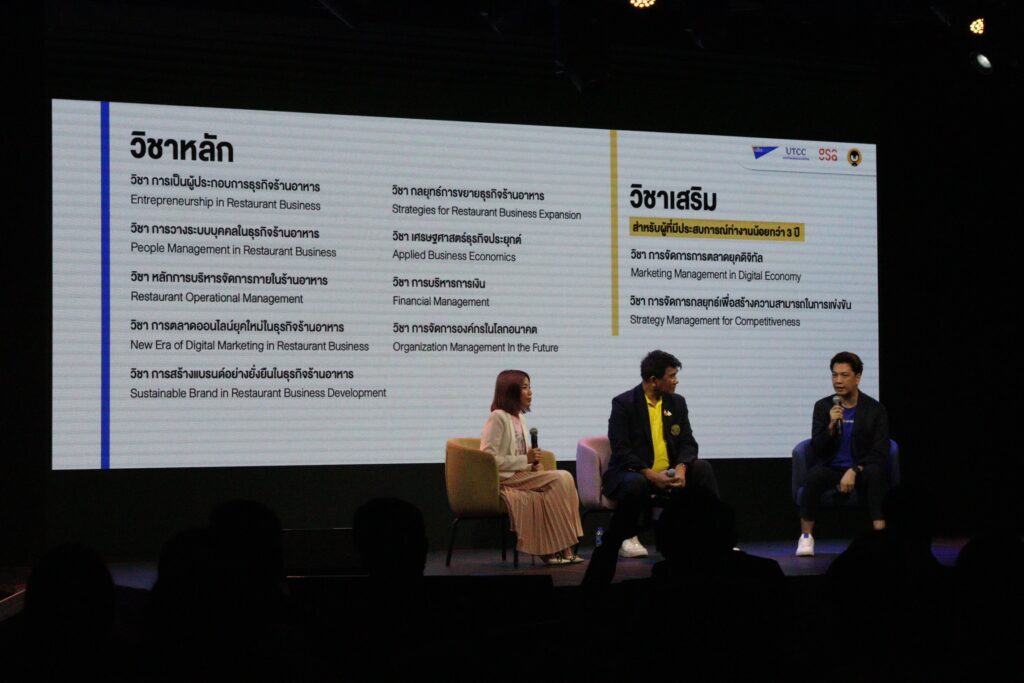 EZ Webmaster July 30, 2024 EZ Webmaster July 30, 2024 มหาวิทยาลัยหอการค้าไทย ผนึกกำลังกูรูด้านอาหาร เปิดตัวหลักสูตรปริญญาโทการจัดการร้านอาหาร (RMBA) หลักสูตรแรกของไทย เมื่อวันที่ 30 กรกฎาคม 2567 มหาวิทยาลัยหอการค้าไทยได้จัดงานแถลงข่าวและสัมมนาเปิดตัวหลักสูตรปริญญาโทด้านการจัดการร้านอาหาร (RMBA) อย่างเป็นทางการ โดยมีผู้บริหารและผู้เชี่ยวชาญในวงการร่วมให้ข้อมูล ถือเป็นหลักสูตรแรกของประเทศไทยที่เน้นเฉพาะทางด้านการบริหารจัดการร้านอาหาร บทบาทของหอการค้าไทยในการยกระดับธุรกิจร้านอาหาร โดย ดร.กฤษณะ วจีไกรลาศ กรรมการเลขาธิการหอการค้าไทย ได้กล่าวถึงบทบาทของหอการค้าไทยในการยกระดับธุรกิจร้านอาหารว่า “หอการค้าไทยมุ่งเน้น 5 ประเด็นสำคัญ” ได้แก่ การเพิ่มมูลค่าให้แก่อัตลักษณ์อาหารไทย การส่งเสริมการท่องเที่ยวอาหาร การสร้างเครือข่ายและเชื่อมโยงธุรกิจ การให้คำปรึกษาและฝึกอบรม การส่งเสริมผู้ประกอบการไทยในการขยายธุรกิจสู่ต่างประเทศ “อาหารไทยเป็นหนึ่งใน Soft Power ที่สำคัญของประเทศ และเป็น Competitive Advantage ที่ควรได้รับการส่งเสริมให้เป็นอุตสาหกรรมหลัก การมีหลักสูตร RMBA จะช่วยพัฒนาบุคลากรที่มีความเชี่ยวชาญเฉพาะทาง ซึ่งจะเป็นกำลังสำคัญในการยกระดับอุตสาหกรรมอาหารไทยสู่ระดับสากล” . การพูดคุยรายละเอียดเกี่ยวกับหลักสูตร รศ.ดร. ธนวรรธน์ พลวิชัย อธิการบดีมหาวิทยาลัยหอการค้าไทยและผู้อำนวยการหลักสูตร RMBA กล่าวว่า “หลักสูตรนี้ตอบสนองความต้องการของตลาดที่ต้องการบุคลากรที่มีความรู้ความสามารถเฉพาะทางด้านการบริหารจัดการร้านอาหาร เราได้ออกแบบหลักสูตรให้ครอบคลุมทุกมิติ ตั้งแต่การวางแผนธุรกิจ การตลาด การบริหารต้นทุน การพัฒนาเมนู ไปจนถึงการบริหารบุคลากร เพื่อให้ผู้เรียนสามารถนำความรู้ไปประยุกต์ใช้ในการดำเนินธูรกิจร้านอาหารได้อย่างมีประสิทธิภาพ” “เรามีความยินดีที่จะแจ้งว่าหลักสูตร RMBA รุ่นแรกได้รับความสนใจอย่างล้นหลาม มีผู้สมัครเต็มจำนวนแล้ว และขณะนี้เราได้เปิดรับสมัครสำหรับรุ่นที่ 2 แล้ว ผู้สนใจสามารถดูรายละเอียดเพิ่มเติมและสมัครได้ที่ www.utcc.ac.th/rmba “ คุณต่อ ธนพงศ์ วงศ์ชินศรี กรรมการผู้จัดการ บริษัท เพนกวินเอ็กซ์ จำกัด (เจ้าของเพจ Torpenguin) ซึ่งร่วมมือกับมหาวิทยาลัยในโครงการนี้ กล่าวเสริมถึงจุดเด่นของหลักสูตรว่า “RMBA ผสมผสานระหว่างภาคทฤษฎีและปฏิบัติ มีเครือข่ายพันธมิตรที่แข็งแรง วิทยากรผู้เชี่ยวชาญ และโอกาสในการพัฒนาธุรกิจ ซึ่งจะช่วยเปิดโอกาสให้ผู้เรียนได้เข้าถึงข้อมูลและเทรนด์ใหม่ๆ ในวงการอาหารอยู่เสมอ” “ในฐานะผู้มีประสบการณ์ในวงการอาหาร ผมเห็นว่
