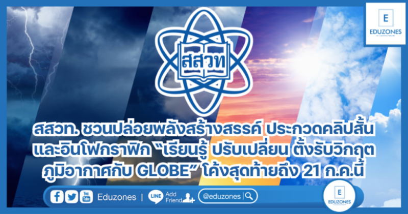 EZ Webmaster July 15, 2024 สสวท. ชวนนักเรียนปล่อยพลังสร้างสรรค์ ประกวดคลิปสั้นและอินโฟกราฟิก “เรียนรู้ ปรับเปลี่ยน ตั้งรับวิกฤตภูมิอากาศกับ GLOBE” โค้งสุดท้ายถึง 21 ก.ค.นี้ EZ Webmaster July 15, 2024 สถาบันส่งเสริมการสอนวิทยาศาสตร์และเทคโนโลยี (สสวท.) โดยโครงการโลกศึกษาเพื่อพัฒนาสิ่งแวดล้อม (GLOBE) เชิญนักเรียนประถมศึกษาปีที่ 4 – มัธยมศึกษาปีที่ 6 ส่งคลิปวีดิโอสั้นความยาวไม่เกิน 5 นาที และอินโฟกราฟิก (Infographic) ร่วมประกวด GLOBE Student Challenge Award ประจำปี 2567 หัวข้อ GLOBE Climate Change Learning Activities in School “เรียนรู้ ปรับเปลี่ยน ตั้งรับวิกฤตการเปลี่ยนแปลงภูมิอากาศกับ GLOBE” เข้าร่วมประกวดชิงรางวัลพร้อมเกียรติบัตร ผู้สมัครประกอบด้วยทีมนักเรียนตั้งแต่ 5 คนแต่ไม่เกิน 50 คน ต่อทีม กําลังศึกษาอยู่ในชั้นประถมศึกษาปีที่ 4 ถึง มัธยมศึกษาปีที่… Continue Reading