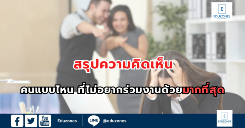 EZ Webmaster July 15, 2024 สรุปความคิดเห็น “คนแบบไหน ที่ไม่อยากร่วมงานมากที่สุด” EZ Webmaster July 15, 2024 แน่นอนว่าสังคมการทำงานย่อมต้องพบเจอกับบุคคลหลากหลายและแตกต่างกันไป และมักจะมีคนประเภทที่เราไม่อยากร่วมงานด้วยที่สุด วันนี้จะมารวมความคิดเห็นจากชาวชุมชน Eduzones ที่ได้ร่วมแสดงความคิดเห็นว่า “คนแบบไหนที่ไม่อยากร่วมงานมากที่สุด” ดูความคิดเห็นได้ที่นี่ โดยทาง Eduzones ได้สรุปความคิดเห็นจากชาวชุมชน Eduzones ออกเป็น 4 ประเด็นหลัก ดังนี้ 1.คนเห็นแก่ตัว เชื่อว่าทุกคนนั้นก็ล้วนแต่ต้องเคยพบเจอคนที่ “เห็นแก่ตัว” ด้วยกันทั้งสิ้น ไม่ว่าจะเป็นเพศไหนหรือว่าวัยไหนก็ตามทุกคนมีสิทธิ์เป็นได้ทั้งนั้น การเห็นแก่ตัวคือการที่ได้ทำอะไรหลายสิ่งหลายอย่างเพื่อประโยชน์และความสุขของตัวเองล้วนๆ คิดและทำเพื่อประโยชน์ของตนเองโดยที่ไม่คำนึงถึงผู้อื่น และคนประเภทนี้ จะคอยแสวงหาผลประโยชน์อยู่บนความลำบากของคนอื่น มีความสุขอยู่บนความทุกข์ของใครๆ เพื่อให้ได้ในสิ่งที่ตัวเองต้องการ 2.คนขี้อิจฉา อีกหนึ่งประเภทของบุคคลที่ไม่ว่าใครๆ ที่ได้อยู่ใกล้ด้วยแล้วต้องมีความรู้สึกเหมือนขาดพลังงาน เสียสุขภาพจิต… Continue Reading