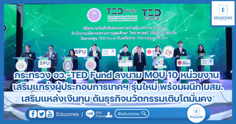 มทร.ธัญบุรี พร้อมปั้นบัณฑิตสู่ยุค NEXT GEN การันตีความสำเร็จด้วยคลื่นมหาชน tui sakrapeeDecember 4, 2025 มหาวิทยาลัยเทคโนโลยีราชมงคลธัญบุรี (มทร.ธัญบุรี) สร้างปรากฏการณ์ครั้งสำคัญในแวดวงการศึกษาไทยผ่านงาน ‘RMUTT NEXT GEN: Open House 2026 : เปิดประตูสู่ราชมงคลธัญบุรี 69’ เมื่อวันที่ 27 และ 28 พฤศจิกายน 2568… ม.กรุงเทพ จัดงาน The Shape of Tomorrow: Bangkok Art & Architecture @Dib Bangkok tui sakrapeeDecember 4, 2025 คณะสถาปัตยกรรมศาสตร์ มหาวิทยาลัยกรุงเทพ จัดงาน “The Shape of Tomorrow: Bangkok Art & Architecture” เปิดพื้นที่แลกเปลี่ยนองค์ความรู้และประสบการณ์ระหว่างนักวิชาการ ผู้เชี่ยวชาญในวงการสถาปัตยกรรมที่มุ่งเน้นแนวคิดการออกแบบที่ตอบโจทย์ความยั่งยืน (Sustainability) และการปรับใช้พื้นที่อาคารให้เกิดคุณค่าใหม่ (Adaptive Reuse) โดยปรับเปลี่ยนพื้นที่เดิมให้กลายเป็นพื้นที่สร้างสรรค์อย่าง… มหาวิทยาลัยราชภัฏสวนสุนันทา จับมือ “เอ็ม พาวเวอร์ คอร์ปอเรชั่น” ลงนาม MOU ขับเคลื่อนระบบจัดการวัสดุรีไซเคิล สู่มหาวิทยาลัยสีเขียวอย่างยั่งยืน tui sakrapeeDecember 4, 2025 เมื่อวันพฤหัสบดีที่ 4 ธันวาคม 2568 มหาวิทยาลัยราชภัฏสวนสุนันทา จัดพิธีลงนามบันทึกความเข้าใจ (MOU) ร่วมกับบริษัท เอ็ม พาวเวอร์ คอร์ปอเรชั่น จำกัด ณ ห้องประชุมสภามหาวิทยาลัย เพื่อขับเคลื่อนการพัฒนาระบบการจัดการวัสดุรีไซเคิลภายในมหาวิทยาลัยอย่างเป็นรูปธรรมและยั่งยืน พิธีลงนามในครั้งนี้มีวัตถุประสงค์เพื่อพัฒนากลไกการจัดการวัสดุรีไซเคิลให้มีประสิทธิภาพยิ่งขึ้น ส่งเสริมการคัดแยกขยะอย่างถูกต้อง เพิ่มคุณค่าและสร้างรายได้จากวัสดุที่สามารถนำกลับมาใช้ใหม่… สุดเจ๋ง! สถานศึกษาอาชีวะ รับรางวัลโครงการชีววิถีฯ ระดับประเทศ ประจำปี 2568 สานต่อปณิธานหลักปรัชญาเศรษฐกิจพอเพียงของพ่อหลวงรัชกาลที่ 9 EZ WebmasterDecember 3, 2025 สุดเจ๋ง! สถานศึกษาอาชีวะ รับรางวัลโครงการชีววิถีฯ ระดับประเทศ ประจำปี 2568 สานต่อปณิธานหลักปรัชญาเศรษฐกิจพอเพียงของพ่อหลวงรัชกาลที่ 9 วันนี้ (1 ธ.ค. 68) นายยศพล เวณุโกเศศ เลขาธิการคณะกรรมการการอาชีวศึกษา มอบหมายให้ นายสง่า แต่เชื้อสาย… Search for: Search Month: July 2024 EZ Webmaster July 30, 2024 กระทรวง อว.-TED Fund ลงนาม MOU 10 หน่วยงาน เสริมแกร่งผู้ประกอบการเทคฯ รุ่นใหม่ พร้อมผนึก บสย. เสริมแหล่งเงินทุน ดันธุรกิจนวัตกรรมเติบโตมั่นคง คาดสร้างมูลค่าทางเศรษฐกิจ 1 พันล้านบาท ในปี 67 EZ Webmaster July 30, 2024 กองทุนพัฒนาผู้ประกอบการเทคโนโลยีและนวัตกรรม หรือ TED Fund กระทรวงการอุดมศึกษา วิทยาศาสตร์ วิจัยและนวัตกรรม (อว.) จัดพิธีลงนามความร่วมมือกับเครือข่ายร่วมพัฒนาผู้ประกอบการ (TED Fellow) รวม 10 หน่วยงาน เน้นสนับสนุนผู้ประกอบการเทคโนโลยีและนวัตกรรมรุ่นใหม่ เข้าถึงแหล่งเงินทุน เสริมศักยภาพ ยกระดับความสามารถ