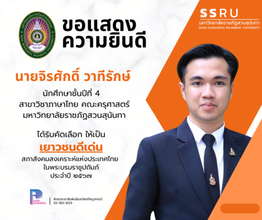 tui sakrapee July 16, 2024 สภาสังคมสงเคราะห์ฯ ยกย่องนักศึกษาครุศาสตร์ สวนสุนันทา เป็นเยาวชนดีเด่น ประจำปี 2567 tui sakrapee July 16, 2024 คณะครุศาสตร์ มหาวิทยาลัยราชภัฏสวนสุนันทา ขอแสดงความยินดี กับ “นายจิรศักดิ์ วาทีรักษ์” นักศึกษาชั้นปีที่ 4 สาขาวิชาภาษาไทย คณะครุศาสตร์ มหาวิทยาลัยราชภัฏสวนสุนันทา ที่ได้รับคัดเลือกให้เป็น #เยาวชนดีเด่น ประจำปี 2567 จากสภาสังคมสงเคราะห์แห่งประเทศไทยในพระบรมราชูปถัมภ์ Continue Reading