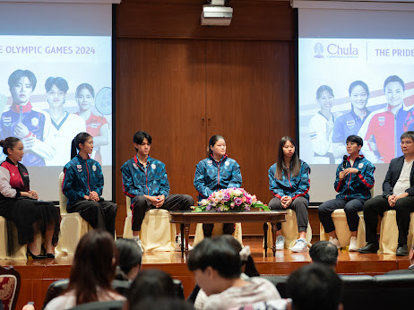 EZ Webmaster August 30, 2024 EZ Webmaster August 30, 2024 จุฬาฯ แสดงความยินดีนักกีฬาโอลิมปิกจุฬาฯ จัดเสวนา “Work-Life Balance กับ Chula Olympic Heros” จุฬาลงกรณ์มหาวิทยาลัยจัดงานแสดงความยินดีแก่นิสิตเก่าและนิสิตปัจจุบันที่สร้างความภาคภูมิใจแก่มหาวิทยาลัยและประเทศไทยในฐานะนักกีฬาทีมชาติไทยเข้าร่วมการแข่งขันกีฬาโอลิมปิก 2024 “ปารีสเกมส์” พร้อมมอบเสื้อสามารถแก่พาณิภัค วงศ์พัฒนกิจ นิสิตเก่าคณะวิทยาศาสตร์การกีฬา จุฬาฯ ซึ่งประสบความสำเร็จสูงสุดในอาชีพนักกีฬาโดยสามารถคว้าเหรียญทองโอลิมปิก 2024 จากกีฬาเทควันโด รุ่น 49 กิโลกรัมหญิง เป็นการคว้าเหรียญทองโอลิมปิก สองสมัยซ้อน งานแสดงความยินดีแก่นิสิตเก่าและนิสิตปัจจุบันนักกีฬาโอลิมปิก 2024 จัดขึ้นในที่ประชุมสภาจุฬาลงกรณ์มหาวิทยาลัย เมื่อวันที่ 29 สิงหาคม 2567 ณ ห้องประชุม 202 อาคารจามจุรี 4 นักกีฬาจุฬาฯ ที่มาร่วมงานประกอบด้วย พาณิภัค วงศ์พัฒนกิจ นักกีฬาเทควันโด บัณฑิตคณะวิทยาศาสตร์การกีฬา ศศิกานต์ ทองจันทร์ นักกีฬาเทควันโด นิสิตชั้นปีที่ 2 คณะวิทยาศาสตร์การกีฬา บัลลังก์ ทับทิมแดง นักกีฬาเทควันโด นิสิตชั้นปีที่ 1 คณะนิเทศศาสตร์ ธันยพร พฤกษากร นักกีฬายิงปืน บัณฑิตคณะวิศวกรรมศาสตร์ และชนาธิป ซ้อนขำ ผู้ช่วยผู้ฝึกสอนกีฬาเทควันโด อดีตนักกีฬา เทควันโดเหรียญทองแดงกีฬาโอลิมปิกที่ลอนดอน ปี 2012 บัณฑิตคณะวิทยาศาสตร์การกีฬา งานแสดงความยินดีในครั้งนี้เริ่มด้วย รศ.ดร.สุกัญญา สมไพบูลย์ ผู้รักษาการรองอธิการบดีด้านกิจการนิสิต จุฬาฯ กล่าวรายงาน ศ. (พิเศษ) ดร.สุรเกียรติ์ เสถียรไทย นายกสภาจุฬาลงกรณ์มหาวิทยาลัยกล่าวต้อนรับ กล่าวแสดงความขอบคุณ และแสดงความยินดีกับนักกีฬาโอลิมปิกของจุฬาฯ รวมทั้งสวมเสื้อสามารถให้พาณิภัค วงศ์พัฒนกิจ ซึ่งคว้าเหรียญทองกีฬาโอลิมปิก 2024 จากนั้น ศ.ดร. วิเลิศ ภูริวัชร ผู้รักษาการอธิการบดีจุฬาฯ มอบของที่ระลึกให้นักกีฬาจุฬาฯ ที่ร่วมการแข่งขันกีฬาโอลิมปิก 2024 จากนั้นนายกสภาจุฬาลงกรณ์มหาวิทยาลัย กรรมการสภามหาวิทยาลัย ผู้บริหารมหาวิทยาลัย พร้อมด้วยนิสิตเก่าและนิสิตปัจจุบันนักกีฬาโอลิมปิกจากจุฬาฯ ถ่ายรูปร่วมกันในห้องประชุม 202 อาคารจามจุรี 4 และบริเวณด้านล่าง อาคารจามจุรี 4 พาณิภัค วงศ์พัฒนกิจ นักกีฬาเทควันโดเหรียญทองกีฬาโอลิมปิกสองสมัยซ้อน บัณฑิตคณะวิทยาศาสตร์การกีฬา จุฬาฯ เปิดเผยว่า รู้สึกยินดีและภาคภูมิใจที่ได้มีโอกาสกลับมาเยือนรั้วมหาวิทยาลัยอีกครั้งหลังจากสำเร็จการศึกษาระดับปริญญาตรีจากคณะวิทยาศาสตร์การกีฬา ทำให้ได้นึกถึงความทรงจำและประสบการณ์ที่เคยได้รับระหว่างการศึกษา พร้อมกับกล่าวขอบคุณม