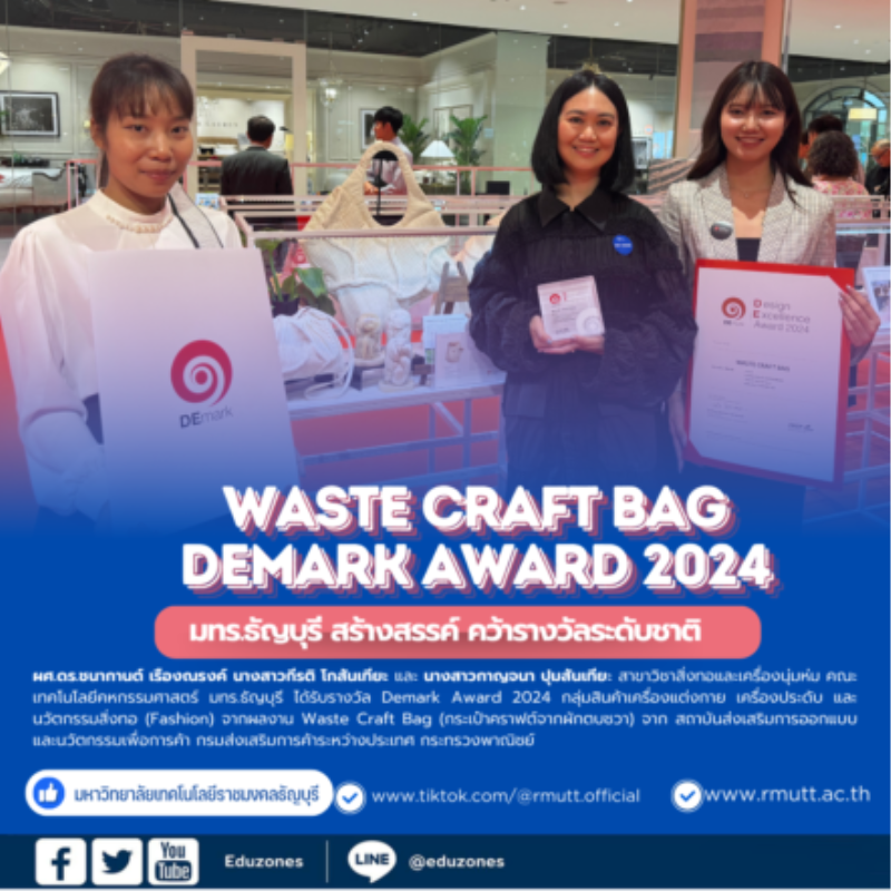 tui sakrapee August 6, 2024 ผลงาน Waste Craft Bag คณาจารย์สาขาวิชาสิ่งทอและเครื่องนุ่มห่ม มทร.ธัญบุรี สร้างสรรค์คว้ารางวัล Demark Award 2024 tui sakrapee August 6, 2024 มหาวิทยาลัยเทคโนโลยีราชมงคลธัญบุรี ขอแสดงความยินดีกับ ผศ.ดร.ชนากานต์ เรืองณรงค์ นางสาวกีรติ โกสันเทียะ และ นางสาวกาญจนา ปุมสันเทียะ สาขาวิชาสิ่งทอและเครื่องนุ่มห่ม คณะเทคโนโลยีคหกรรมศาสตร์ ที่ได้รับรางวัล Demark Award 2024 กลุ่มสินค้าเครื่องแต่งกาย เครื่องประดับ และนวัตกรรมสิ่งทอ (Fashion) จากผลงาน Waste Craft Bag (กระเป๋าคราฟต์จากผักตบชวา) จาก สถาบันส่งเสริมการออกแบบและนวัตกรรมเพื่อการค้า กรมส่งเสริมการค้าระหว่างประเทศ กระทรวงพาณิชย์ . Continue Reading