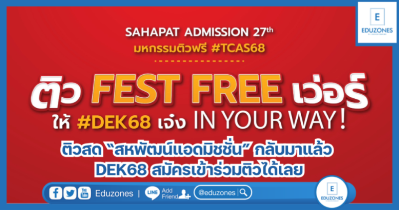 EZ Webmaster August 2, 2024 ติวสด “สหพัฒน์แอดมิชชั่น” กลับมาแล้ว DEK68 สมัครเข้าร่วมติวได้เลย EZ Webmaster August 2, 2024 “สหพัฒน์แอดมิชชั่น” ครั้งที่ 27 ติวเดียวแห่งปี ที่เนื้อหาเข้มข้น เน้นทั้ง “วิชาการ” และ “ความสนุกสนาน” ที่ปีนี้ยกระดับมาด้วยแนวคิด “Sahapat Admission ครั้งที่ 27 “ติว FEST FREE เว่อร์”ให้ #DEK68 เจ๋ง IN YOUR WAY! ชวน DEK68 สมัครเข้าร่วมกิจกรรมติวสด โอกาสเดียวที่จะได้ติวเข้มข้นกับติวเตอร์ชั้นนำแบบตัวเป็น ๆ โดยการจัดติวสด 6 วันติด รวม 12 วิชากับ 24 ติวเตอร์แถวหน้าของประเทศไทย ระหว่างวันที่ 7-12 ตุลาคม 2567 เวลา 09.00-16.00 น. ณ หอประชุมคณะนิเทศศาสตร์ อาคารมงกุฎสมมติวงศ์ จุฬาลงกรณ์มหาวิทยาลัย นักเรียนที่ร่วมกิจกรรมติวสดทั้ง on-site และ online จะได้รับ Certificate Online สามารถนำไปใช้ทำแฟ้มสะสมผลงาน ดาวน์โหลดได้ระหว่างวันที่ 31 ตุลาคม 2567-20 กุมภาพันธ์ 2568 สำหรับเอกสารประกอบการติว นักเรียนที่เข้าเรียน on-site รับเอกสารหน้าห้องติว ส่วนผู้ที่เรียน online ดาวน์โหลดเอกสารทาง www.sahapatadmission.com ได้ตั้งแต่วันที่ 2 ตุลาคม 2567 เป็นต้นไป ส่วนเอกสารเฉลยและดูคลิปติวย้อนหลัง สามารถใช้งานในระบบได้ตั้งแต่วันที่ 1 พฤศจิกายน 2567 เป็นต้นไป สมัครเข้าร่วมติวสดได้ทางเว็บไซต์ www.sahapatadmission.com ตั้งแต่วันที่ 30 กรกฎาคม 2567 เป็นต้นไป… Continue Reading
