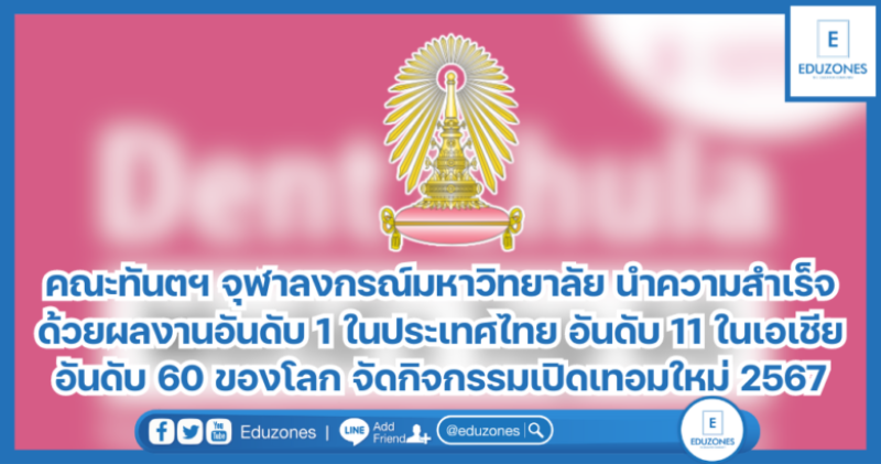 EZ Webmaster September 13, 2024 คณะทันตแพทยศาสตร์ จุฬาลงกรณ์มหาวิทยาลัย นำความสำเร็จด้วยผลงานอันดับ 1 ในประเทศไทย อันดับ 11 ในเอเชีย อันดับ 60 ของโลก จัดกิจกรรมเปิดเทอมใหม่ 2567 EZ Webmaster September 13, 2024 คณะทันตแพทยศาสตร์ จุฬาลงกรณ์มหาวิทยาลัย ได้นำวิสัยทัศน์ สถาบันการศึกษาทางทันตแพทยศาสตร์ระดับโลก ที่สร้างบัณฑิต องค์ความรู้ นวัตกรรมเพื่อพัฒนาสังคมอย่างยั่งยืน นำโดย ศาสตราจารย์ ทพ.ดร.พรชัย จันศิษย์ยานนท์ คณบดี คณะทันตแพทยศาสตร์ จุฬาฯ ด้วยผลงานที่สง่างามในปี 2567 กับความสำเร็จที่เกิดขึ้น คือ คณะทันตแพทยศาสตร์ จุฬาฯ ได้รับการจัดอันดับความเป็นเลิศด้านวิชาการ จาก QS WORLD UNIVERSITY RANKINGS by Subject Areas 2024 คือ อันดับ 1 ในประเทศไทย อันดับ 11 ในเอเชีย อันดับ 60 ของโลก คณะทันตแพทยศาสตร์ จุฬาฯ ได้มุ่งมั่นสู่ความสำเร็จที่จะสร้างสรรค์ให้ก้าวไกลต่อไป ด้วยการเริ่มต้นปีการศึกษาใหม่ ในกิจกรรมต้อนรับเปิดเทอม ด้วยงานปฐมนิเทศนิสิตใหม่ รุ่นที่ 86 พิธีมอบเสื้อกาวน์ นิสิตชั้นปี 4 และ พิธีไหว้ครู 2567 งานปฐมนิเทศนิสิตใหม่ คณะทันตแพทยศาสตร์… Continue Reading