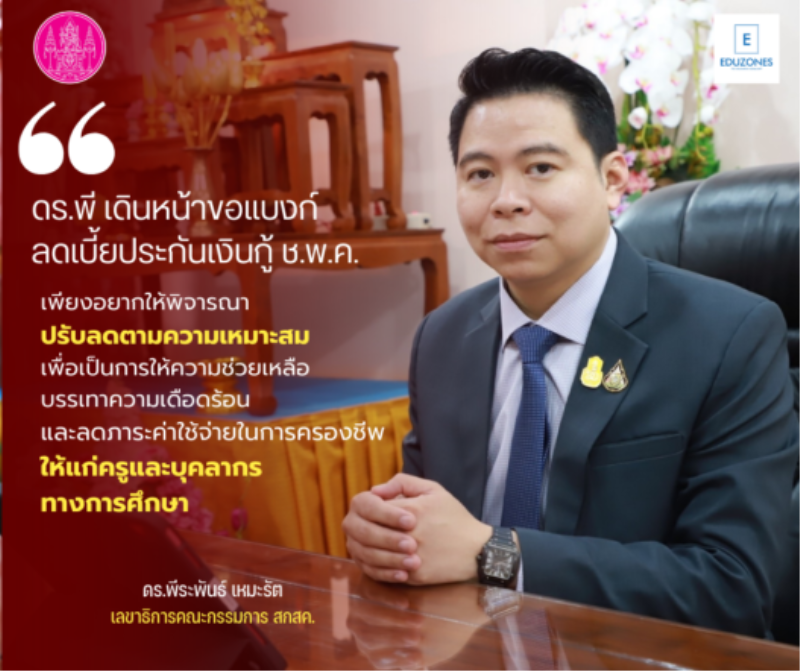 tui sakrapee September 12, 2024 ดร.พี เดินหน้าขอแบงก์ลดเบี้ยประกันเงินกู้ ช.พ.ค. tui sakrapee September 12, 2024 (กรุงเทพฯ) เลขาธิการคณะกรรมการ สกสค. ส่งหนังสือขอความอนุเคราะห์ธนาคารออมสิน และ บริษัท ทิพยประกันภัย ให้มีการปรับลดอัตราเบี้ยประกันเงินกู้ ช.พ.ค. เพื่อลดภาระค่าใช้จ่ายของครูและบุคลากรทางการศึกษาทุกคน ตามที่ครูและบุคลากรทางการศึกษาที่เดือดร้อนได้ร้องขอก่อนหน้านี้ ตามที่ สกสค.ได้ดำเนินการ ร้องขอความอนุเคราะห์ในการปรับลดเบี้ยประกันเงินกู้สวัสดิการของสมาชิก ช.พ.ค.-ช.พ.ส ต่อ ธนาคารออมสิน และบริษัททิพยประกันภัย เพื่อเป็นการบรรเทาความเดือดร้อนและช่วยเหลือสมาชิกครูและบุคลากรทางการศึกษา เมื่อปลายเดือนสิงหาคมที่ผ่านมา ดร.พีระพันธ์ เหมะรัต เลขาธิการคณะกรรมการ สกสค. กล่าวว่า สกสค.ในฐานะที่เป็นผู้บริหารและกำกับโครงการเงินกู้ ช.พ.ค. ได้เล็งเห็นว่า การปรับขึ้นอัตราค่าเบี้ยประกันดังกล่าว จะเป็นการสร้างภาระและความเดือดร้อนให้กับบรรดาสมาชิกครูและบุคลากรทางการศึกษา ที่เข้าร่วมในโครงการเงินกู้ดังกล่าว จึงได้ทำหนังสือ… Continue Reading