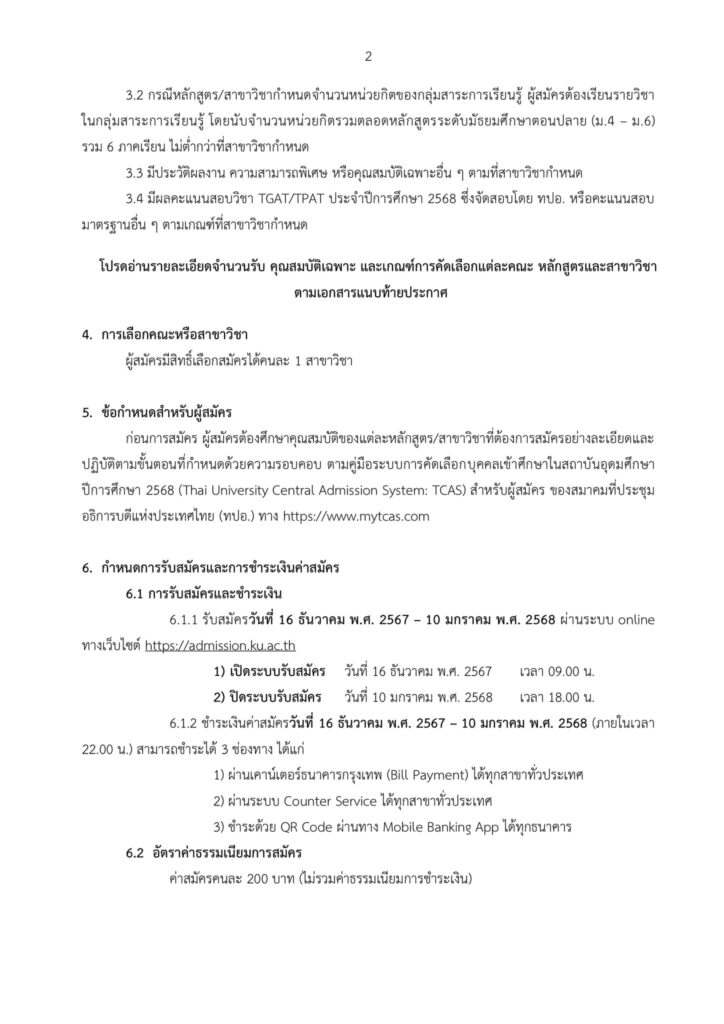 EZ Webmaster October 7, 2024 EZ Webmaster October 7, 2024 ม.เกษตรศาสตร์ เปิดรับสมัครแล้ว รอบที่ 1/2 โครงการช้างเผือก ผ่าน TCAS68 ม.เกษตรศาสตร์ รับสมัครเข้าศึกษาผ่าน TCAS68 รอบที่ 1 Portfolio โครงการช้างเผือก (รอบที่ 1/2) เปิดรับรวม 10 คณะ คณะวิทยาศาสตร์ คณะวิศวกรรมศาสตร์ คณะศึกษาศาสตร์ คณะเศรษฐศาสตร์ คณะสังคมศาสตร์ คณะสัตวแพทยศาสตร์ คณะมนุษยศาสตร์ คณะเทคนิคการสัตวแพทย์ คณะสถาปัตยกรรมศาสตร์ วิทยาลัยการชลประทาน เลือกสมัครได้ 1 สาขา รับสมัคร วันที่ 16 ธ.ค.67 – 10 ม.ค.67 ที่ https://www.admission.ku.ac.th