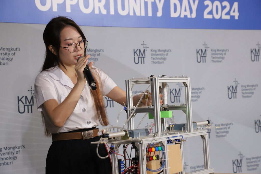 EZ Webmaster October 18, 2024 EZ Webmaster October 18, 2024 KOSEN KMUTT กับการสร้างวิศวกรนักปฏิบัติ “อุปกรณ์ตรวจการรั่วของถุงยางอนามัย” “เครื่องบรรจุลูกเทนนิสลงกระป๋อง” “เครื่องประกอบกล่องกระดาษลูกฟูก” เหล่านี้คือบางส่วนของโมเดลชิ้นงานที่เกิดจากไอเดียของนักศึกษา KOSEN KMUTT ที่จัดแสดงขึ้นเป็นกิจกรรมโชว์เคสจากนักศึกษา KOSEN KMUTT รุ่นที่ 1-2 ในงาน “KOSEN KMUTT Opportunity Day 2024” Showing Skills, Finding Opportunity” เมื่อต้นเดือนตุลาคมที่ผ่านมา รศ.ดร.สุวิทย์ แซ่เตีย อธิการบดี มหาวิทยาลัยเทคโนโลยีพระจอมเกล้าธนบุรี (มจธ.) กล่าวว่า เป้าหมายหนึ่งของการจัดงานนี้ เพื่อให้นักศึกษา KOSEN KMUTT ได้พบปะพูดคุย และแลกเปลี่ยนมุมมองด้านวิศวกรรมศาสตร์ร่วมกับบริษัทพันธมิตรผู้เชี่ยวชาญ ทั้งนี้เพื่อเป็นไปตามแผนกลยุทธ์ของกระทรวง อว. ในการสร้างความร่วมมือกับภาคอุตสาหกรรมและสามารถต่อยอดความสัมพันธ์ที่เข้มแข็งและสร้างความยั่งยืนในการพัฒนากำลังคนของประเทศ “นักเรียนโคเซ็น มจธ. รุ่นแรก ที่เข้ามาเรียนเมื่อปี พ.ศ.2563 กำลังจะผ่านขั้นตอนสำคัญของหลักสูตร คือฝึกปฏิบัติงานจริงกับบริษัทเอกชนชั้นนำ ตลอดเทอมที่ 2 ของปีการเรียนปีที่ 5 ที่เป็นปีสุดท้ายของหลักสูตร ดังนั้น เป้าหมายของงานนี้ จึงเป็นทั้งการนำเสนอผลงานหรือโปรเจกต์ของนักศึกษา KOSEN KMUTT รุ่นที่ 1-2 รวมถึงการออกบูธของบริษัทชั้นนำกว่า 20 บริษัท ที่สนใจจะรับนักศึกษาเข้าไปฝึกงานในบริษัทของตนเอง และโอกาสในการสร้างเครือข่ายระหว่างหลักสูตรวิศวกรรมอัตโนมัติ (นานาชาติ) ภาควิชาวิศวกรรมระบบควบคุมและเครื่องมือวัดกับภาคอุตสาหกรรมเพื่อเกิดความร่วมมือทางการศึกษาที่หลากหลายในอนาคต” Ms. Maki Kawamura Minister Counsellor, Representative of the Embassy of Japan in Thailand ที่ปรึกษาสถานเอกอัครราชทูตญี่ปุ่นประจำประเทศไทย กล่าวว่า ความร่วมมือระหว่าง KOSEN ที่หน่วยงานของไทย เพื่อพัฒนาหลักสูตรเชิงปฏิบัติการพัฒนาคนให้มีความรู้ความสามารถ สร้างประโยชน์กับสังคมได้ เปรียบได้กับการมีสถาบันเพื่อสร้าง “คุณหมอของสังคม” (Social doctor) นั่นเอง รศ.ดร.พจน์ ตั้งงามจิตต์ อาจารย์ประจำภาควิชาวิศวกรรมระบบควบคุมและเครื่องมือวัด คณะวิศวกรรมศาสตร์ มจธ. ในฐานะประธานสาขาวิชาวิศวกรรมอัตโนมัติ กล่าวว่า จากจุดเด่นของหลักสูตรนี้ เน้นการเรียนรู้จากการปฏิบัติจริง ที่เขาได้รับการฝึกฝนบ่มเพาะมาตั้งแต่ชั้นปี 1 (เทียบเท่า ม.4) จนถึงปี 5 (เทียบเท่าปริญญาตรี ปี 2) ทำให้มั่นใจได้ว่าการฝึกงานของน้อง ๆ จะเป็นประโยชน์ในหลายๆ ด้าน “นอกจากจะได้โปรเจกต์ที่เข้าไปแก้ปัญหาให้กับบริษัท หรือเป็นข้อมูลใช้ประกอบการตัดสินใจในการดำเนินการขั้นต่อไปของบริษัทในเรื่องใดเรื่องหนึ่งแล้ว ย