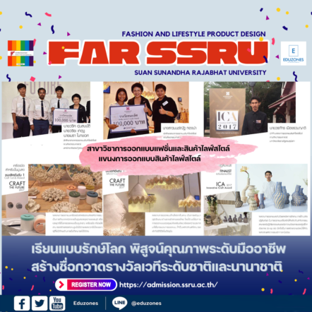 tui sakrapee November 20, 2024 ดีก็ว่าดี!! แขนงวิชาการออกแบบสินค้าไลฟ์สไตล์ สวนสุนันทา เรียนแบบรักษ์โลก พิสูจน์คุณภาพ สร้างชื่อกวาดรางวัลเวทีระดับชาติและนานาชาติ tui sakrapee November 20, 2024 ยุคนี้ต้องยอมรับว่าการจะทำอะไรก็ต้องให้เป็นมิตรกับสิ่งแวดล้อมไว้ก่อน เป็นเทรนด์ที่กำลังมาแรงในขณะนี้ การรีไซเคิลหรือการนำกลับมาใช้ใหม่สามารถช่วยลดขยะให้กับโลกใบนี้ได้อย่างมาก หรือการเลือกใช้วัสดุจากธรรมชาติทดแทนการใช้พลาสติกก็เป็นวิธีที่นิยมและถือว่าง่ายเพียงแค่ปรับพฤติกรรมและใส่ใจในการเลือกใช้ แม้ในวงการงานออกแบบหรืออุตสาหกรรมการผลิตสินค้าเพื่อตอบสนองความต้องการของผู้บริโภค ยังหันมาสนับสนุนการใช้วัสดุจากธรรมชาติ รู้หรือไม่ คณะศิลปกรรมศาสตร์ มหาวิทยาลัยราชภัฏสวนสุนันทา มีหลักสูตรที่ตอบโจทก์การทำงานที่เกี่ยวกับการออกแบบโดยเกี่ยวข้องกับวัสดุที่มาจากธรรมชาติ เรียนรู้วิธีการแปรรูปหรือรีไซเคิล ผลิตผลงานการออกแบบที่ได้คว้ารางวัลมากมายจากเวทีต่าง ๆ ทั้งในระดับประเทศและระดับนานาชาติ นั่นคือ แขนงวิชาการออกแบบสินค้าไลฟ์สไตล์ นั้นเอง วันนี้จะพาไปรู้จักกับนักศึกษาที่ได้รับรางวัลพร้อมผลงานที่รับรองว่าต้องร้องว้าว… นี่เป็นเพียงแค่ส่วนหนึ่งเท่านั้น น้อง ๆ คนไหนที่มีความฝันหรือมีใจรักในการออกแบบและในขณะเดียวกันก็หลงเสน่ห์ในธรรมชาติบนโลกใบนี้ ขอแนะนำ แขนงวิชาการออกแบบสินค้าไลฟ์สไตล์ คณะศิลปกรรมศาสตร์ มหาวิทยาลัยราชภัฏสวนสุนันทา จะเป็นตัวเลือกที่น่าสนใจอย่างมาก ไม่ใช่แค่ทฤษฎีทางด้านศิลปะและการออกแบบที่น้องๆจะได้รับ แต่ยังจะได้ลงมือปฏิบัติจริง ทั้งห้องปฏิบัติการที่เพียบพร้อมมีศูนย์วัสดุสร้างสรรค์ และอาจารย์ที่มากด้วยประสบการณ์และได้รับรางวัลมากมายด้วยเช่นกัน สามารถสมัครเรียนได้ทาง… Continue Reading