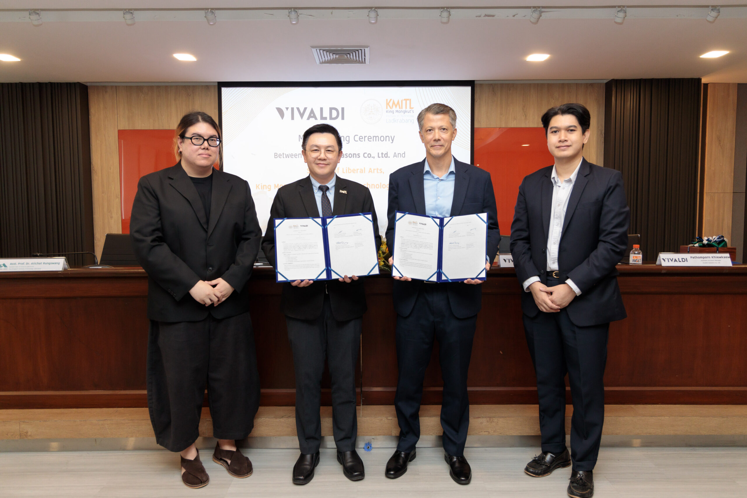 EZ Webmaster December 16, 2024 EZ Webmaster December 16, 2024 คณะศิลปศาสตร์ สจล. ลงนามความร่วมมือ วิวาลดี้ พับลิค รีเลชั่นส์ ยกระดับการเรียนรู้สู่ประสบการณ์จริงในสายงานประชาสัมพันธ์ คณะศิลปศาสตร์ สถาบันเทคโนโลยีพระจอมเกล้าเจ้าคุณทหารลาดกระบัง ลงนามความร่วมมือกับ วิวาลดี้ พับลิค รีเลชั่นส์ ผู้นำด้านการประชาสัมพันธ์และการให้คำปรึกษาด้านการสื่อสารและการตลาด โดยความร่วมมือนี้มีเป้าหมายเพื่อส่งเสริมการเรียนรู้แบบบูรณาการกับการทำงาน และการฝึกประสบการณ์วิชาชีพเพื่อมุ่งเน้นการพัฒนาทักษะและสร้างประสบการณ์จริงในด้านประชาสัมพันธ์และการตลาดแก่นักศึกษา นำโดย ผศ. ดร.เอกรัตน์ สุวรรณกูล (ที่ 2 จากซ้าย) คณบดีคณะศิลปศาสตร์ และ มร.โจเซฟ เฮนรี (ที่ 3 จากซ้าย) ประธานเจ้าหน้าที่บริหารและผู้ร่วมก่อตั้ง วิวาลดี้ พับลิค รีเลชั่นส์ พร้อมด้วย ผศ. ดร.อติชาต รุ่งสว่าง (ที่ 1 จากซ้าย) ผู้ช่วยคณบดีคณะศิลปศาสตร์ และ นายปฐมพร เขียวแก้ว (ที่ 4 จากซ้าย) ผู้ช่วยผู้จัดการประชาสัมพันธ์ วิวาลดี้ พับลิค รีเลชั่นส์ ร่วมเป็นสักขีพยานในพิธีลงนามครั้งสำคัญนี้ ณ สำนักงานอธิการบดี สถาบันเทคโนโลยี พระจอมเกล้าเจ้าคุณทหารลาดกระบัง กรุงเทพฯ