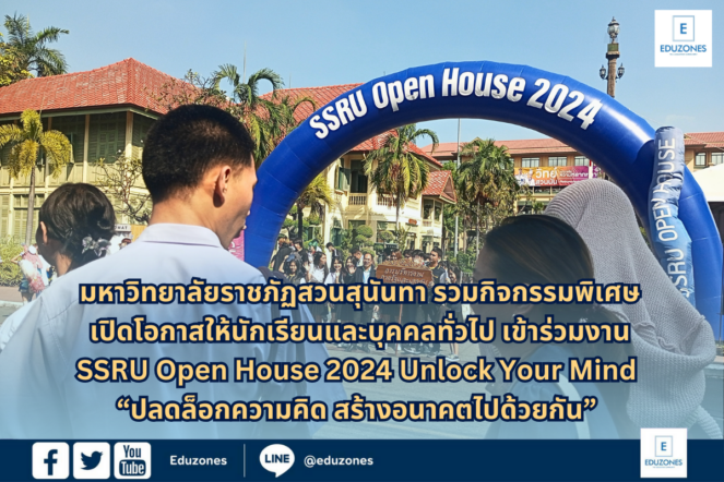 EZ Webmaster December 23, 2024 มหาวิทยาลัยราชภัฏสวนสุนันทา รวมกิจกรรมพิเศษ เปิดโอกาสให้นักเรียนและบุคคลทั่วไป เข้าร่วมงาน SSRU Open House 2024 Unlock Your Mind “ปลดล็อกความคิด สร้างอนาคตไปด้วยกัน” EZ Webmaster December 23, 2024 มหาวิทยาลัยราชภัฏสวนสุนันทา จัดงานเปิดบ้านต้อนรับนักเรียนและบุคคลทั่วไปในงาน SSRU Open House 2024 Unlock Your Mind “ความคิดสร้างอนาคตไปด้วยกัน” 17–18 ธันวาคม 2567 เวลา 08.30 – 16.00 น. ณ มหาวิทยาลัยราชภัฎสวนสุนันทา กรุงเทพมหานคร โดยไม่มีค่าใช้จ่าย พบกับกิจกรรมที่ประสบความสำเร็จ การวิจัยและกิจกรรมร่วมสนุกลุ้นรับรางวัลพิเศษฟรีๆ มอบโอกาสให้เด็กยุคใหม่ได้สำรวจหลักสูตรจากทุกคณะของมหาวิทยาลัยเปิดโลกใหม่ที่มาพร้อมกับความสนุก เป็นจุดศูนย์กลางที่จะช่วยปลดล็อก ค้นพบศักยภาพ พร้อมรับคำแนะนำดีๆ กับคณาจารย์และรุ่นพี่เกี่ยวกับการเลือกเรียนต่อเพื่อให้นักเรียนได้เรียนรู้และทำความเข้าใจกับความต้องการของนักเรียนก่อนก้าวเข้ามาศึกษาต่อในรั้วมหาวิทยาลัยอย่างเป็นทางการในฐานะนักศึกษาเพื่อดำเนินการตามสายอาชีพได้ นอกจากนี้ระหว่างทางก่อนจะถึง ณ ลานกิจกรรมคณะวิทยาศาสตร์และเทคโนโลยี… Continue Reading