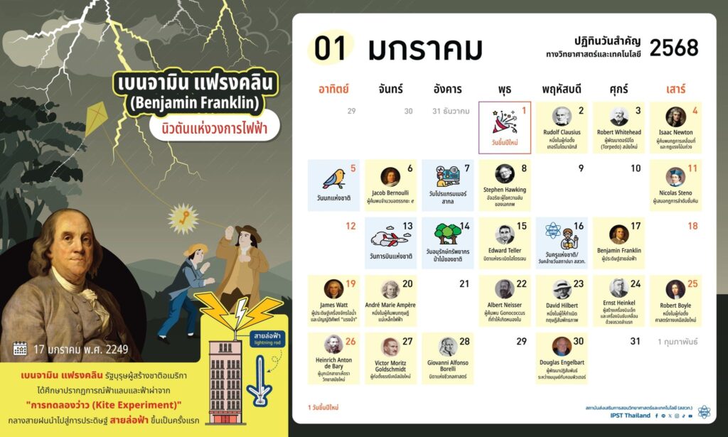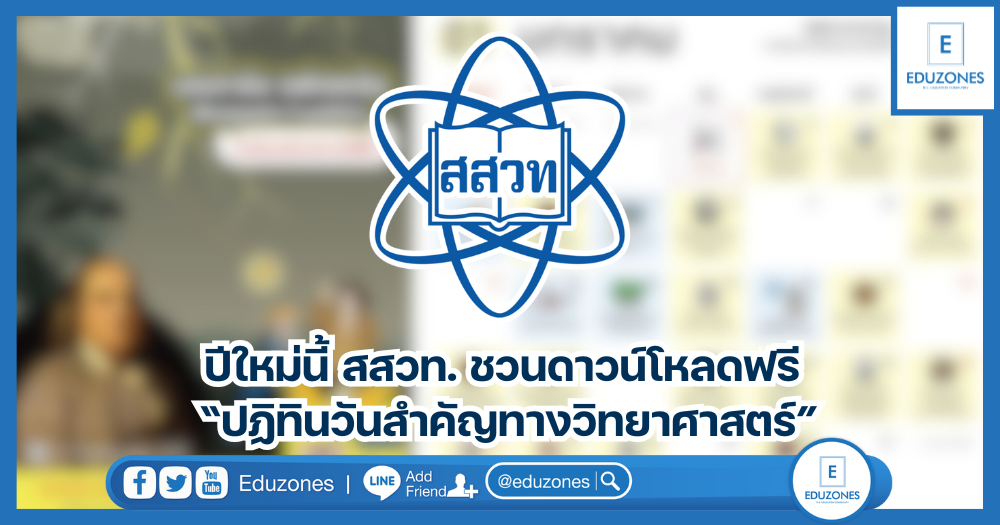 EZ Webmaster January 6, 2025 EZ Webmaster January 6, 2025 ปีใหม่นี้ สสวท. ชวนดาวน์โหลดฟรี “ปฏิทินวันสำคัญทางวิทยาศาสตร์” สถาบันส่งเสริมการสอนวิทยาศาสตร์และเทคโนโลยี (สสวท.) โดยเพจเฟซบุ๊ก IPST Thailand เชิญดาวน์โหลดฟรี ปฏิทินวันสำคัญทางวิทยาศาสตร์และเทคโนโลยี พ.ศ.2568 สี่สีสวยสด พร้อมสาระเด่น ๆ เติมเต็มความรอบรู้วันสำคัญและวันเกิดนักวิทยาศาสตร์ผู้สร้างผลงานให้โลก ขนาดเหมาะเป็นปฏิทินตั้งโต๊ะ ใช้เป็นสื่อเสริมความรู้หรือคู่โต๊ะทำงานก็ทันยุค ดาวน์โหลดใช้ฟรีที่เว็บไซต์ สสวท. https://www.ipst.ac.th/ipst-calendar-2025