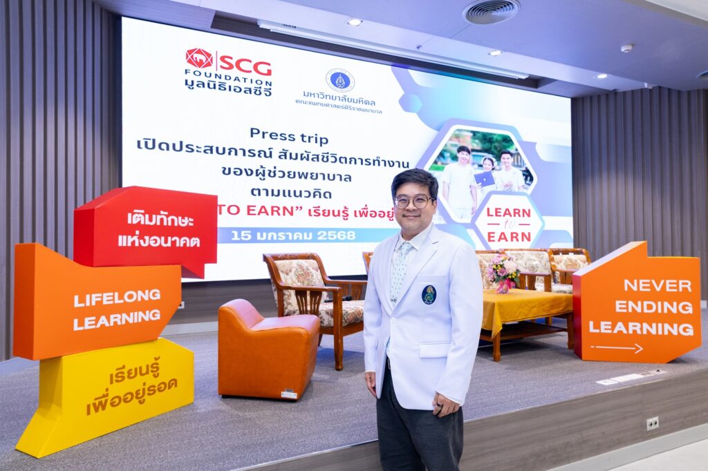 EZ Webmaster January 28, 2025 EZ Webmaster January 28, 2025 มูลนิธิเอสซีจี เปิดแนวคิด Learn to Earn เรียนรู้ เพื่ออยู่รอด ผ่านหลักสูตรผู้ช่วยพยาบาล สร้างการอยู่รอดให้เยาวชน จบไว-มีงานทำ จากปัญหาการขาดแคลนบุคลากรทางการแพทย์ กระทรวงสาธารณสุขและสภาการพยาบาลได้พยายามแก้ปัญหาด้วยการผลิตบุคลากร “ผู้ช่วยพยาบาล” เข้ามาช่วยและแบ่งเบางานของพยาบาล แต่ปัญหานี้ก็ยังไม่คลี่คลายลงมากนัก เพราะอัตราส่วนพยาบาลต่อจำนวนประชากร ยังคงเป็น 1 ต่อ 250 และตั้งเป้าหมายไว้ว่าภายในปี 2577 จะต้องผลิตบุคลากรเพิ่มให้มากขึ้นเพื่อให้อัตราส่วนพยาบาลต่อประชากรเป็น 1 ต่อ 200 ก็ตาม โรงพยาบาลศิริราช ในฐานะโรงพยาบาลที่เป็นโรงเรียนแพทย์ นอกจากการผลิตแพทย์และพยาบาลให้กับวงการแพทย์แล้ว ยังได้เปิดหลักสูตรผู้ช่วยพยาบาลขึ้น เพื่อผลิตบุคลากรมาช่วยในส่วนงานของโรงพยาบาลศิริราชและสถานพยาบาลในเครือข่ายเอง โดยเป็นหลักสูตรการเรียนการสอนภายใต้การบริหารจัดการของคณะแพทยศาสตร์ศิริราชพยาบาล และจากความต้องการผู้ช่วยพยาบาล ทำให้เกิดเป็นความร่วมมือกับมูลนิธิเอสซีจี ในการสนับสนุนทุนการศึกษาให้กับนักเรียนในหลักสูตรนี้มาตั้งแต่ปี 2563 จนถึงปัจจุบัน ที่ผ่านมามูลนิธิเอสซีจี สนับสนุนทุนการศึกษาให้เด็กและเยาวชนมาอย่างต่อเนื่อง โดยมุ่งเน้นการให้ทุนในสาขาที่ตอบโจทย์ความต้องการของประเทศตามแนวคิด Learn to Earn เรียนรู้ เพื่ออยู่รอด ส่งเสริมให้เด็ก และเยาวชน ได้มีการพัฒนาทักษะและประสบการณ์ในสายอาชีพ ทั้งทักษะวิชาชีพและทักษะชีวิตอยู่ตลอดเวลา เพื่อให้สามารถใช้ชีวิตในโลกยุคที่มีการเปลี่ยนแปลงอย่างรวดเร็วได้อย่างยั่งยืนและมั่นคง เช่นการสนับสนุนทุนการศึกษาหลักสูตรประกาศนียบัตร “ผู้ช่วยพยาบาล” กับคณะแพทยศาสตร์ศิริราชพยาบาล มหาวิทยาลัยมหิดล จำนวน 179 ทุน เป็นงบประมาณกว่า 4 ล้านบาท รศ. นพ. ตรีภพ เลิศบรรณพงษ์ รองคณบดีฝ่ายการศึกษาก่อนปริญญา คณะแพทยศาสตร์ศิริราชพยาบาล มหาวิทยาลัยมหิดล กล่าวว่า ในปัจจุบันเรายังขาดแคลนบุคลากรอยู่เป็นจำนวนมาก แม้ว่าจะมีแผนเพิ่มอัตราการผลิตบุคลากรให้มากขึ้น แต่สถาบันที่ผลิตบุคลากรนั้นยังมีจำกัด และแต่ละแห่งยังมีข้อจำกัดในขีดความสามารถในการผลิตบุคลากรในจำนวนที่จำกัดด้วย ในส่วนของศิริราชเองสามารถผลิตผู้ช่วยพยาบาลได้ปีละประมาณ 200 คน ซึ่งก็ไม่เพียงพอต่อความต้องการทั้งของภายในโรงพยาบาลและในตลาดแรงงาน ทำให้พยาบาลและผู้ช่วยพยาบาลในปัจจุบันต้องปฏิบัติหน้าที่อย่างหนักและทำงานมากกว่า 10 ชั่วโมงต่อวัน “เมื่อก่อนเรามุ่งผลิตพยาบาลเป็นหลัก แต่กว่าจะได้พยาบ