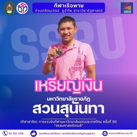 tui sakrapee January 16, 2025 สวนสุนันทา คว้าเหรียญเงินเรือพาย ธรรมศาสตร์เกมส์ ครั้งที่ 50 tui sakrapee January 16, 2025 สวนสุนันทา คว้าเหรียญเงิน กีฬา(สาธิต) เรือพาย ในธรรมศาสตร์เกมส์ ครั้งที่ 50 เมื่อวันที่ 15 มกราคม 2568 ในการแข่งขันกีฬา(สาธิต) เรือพายชิงชนะเลิศ รายการ SUP ระยะทาง 1,000 เมตร ณ ศูนย์ฝึกกีฬาเรือพายราชนาวี อ่างเก็บน้ำคลองบางไผ่ จังหวัดระยอง มหาวิทยาลัยราชภัฏสวนสุนันทา ภายใต้การดูแลของกองพัฒนานักศึกษา ฝ่ายกีฬาและส่งเสริมสุขภาพ ได้ส่ง จ่าเอกรัตนเจตน์ ชูอำไพ นักศึกษาสาขาวิชารัฐศาสตร์ วิทยาลัยการเมืองและการปกครอง ลงแข่งขันในรายการนี้ ✨… Continue Reading