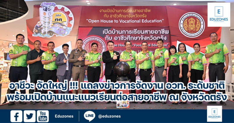 EZ Webmaster January 13, 2025 อาชีวะ จัดใหญ่ !!! แถลงข่าวการจัดงาน อวท. ระดับชาติ พร้อมเปิดบ้านแนะแนวเรียนต่อสายอาชีพ ณ จังหวัดตรัง EZ Webmaster January 13, 2025 นายยศพล เวณุโกเศศ เลขาธิการคณะกรรมการการอาชีวศึกษา มอบหมายให้ นายสง่า แต่เชื้อสาย รองเลขาธิการคณะกรรมการการอาชีวศึกษา (รองเลขาธิการ กอศ.) เป็นประธานงานแถลงข่าวการจัดงานประชุมวิชาการองค์การนักวิชาชีพในอนาคตแห่งประเทศไทย (อวท.) ระดับชาติ ครั้งที่ 33 ประจำปีการศึกษา 2567 และเปิดบ้านการเรียนสายอาชีพ กับอาชีวศึกษาจังหวัดตรัง “Open House to Vocational Education” โดยมี นายทรงกลด สว่างวงศ์ ผู้ว่าราชการจังหวัดตรัง พันตำรวจเอก เอกณรงค์ สวัสดิกานนท์ รองผู้บังคับการตำรวจภูธรจังหวัดตรัง นายสุธรรม… Continue Reading