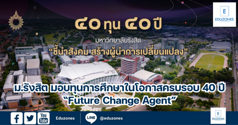 EZ Webmaster January 20, 2025 ม.รังสิต มอบทุนการศึกษาในโอกาสครบรอบ 40 ปี “Future Change Agent” EZ Webmaster January 20, 2025 มหาวิทยาลัยรังสิต มอบทุนการศึกษาตลอดหลักสูตร เนื่องในโอกาสครบรอบ 40 ปี จำนวน 40 ทุน เพื่อสนับสนุนและส่งเสริมศักยภาพของนักเรียน ม.ปลาย ที่จะก้าวเข้าสู่รั้วมหาวิทยาลัยและอยากเป็นผู้นำในการเปลี่ยนแปลงต่อไปในอนาคต “Future Change Agent” ดร.อรรถวิท อุไรรัตน์ อธิการบดีมหาวิทยาลัยรังสิต กล่าวว่า มหาวิทยาลัยรังสิตมีความภูมิใจในการผลิตบัณฑิตที่มีความคิดสร้างสรรค์ ยึดมั่นในคุณธรรม และเป็นผู้นำการเปลี่ยนแปลงในสังคมมาตลอดระยะเวลาหลายทศวรรษ และเพื่อเป็นการเฉลิมฉลองในโอกาสครบรอบ 40 ปี มหาวิทยาลัยรังสิต จึงมอบทุนการศึกษาตลอดหลักสูตร (100%) ให้แก่ นักเรียนชั้นมัธยมศึกษาตอนปลายที่กำลังจะก้าวเข้าสู่รั้วมหาวิทยาลัยในปีการศึกษา 2568 โดยทุนการศึกษานี้มุ่งหวังที่จะมอบโอกาสให้ผู้ที่มีความตั้งใจในการใช้ความรู้ความสามารถและความคิดสร้างสรรค์ในการพัฒนาสังคมและโลกในอนาคต ด้วยการเสริมสร้างคุณธรรมและค่านิยมที่ดี… Continue Reading