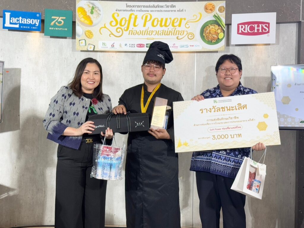 EZ Webmaster February 17, 2025 EZ Webmaster February 17, 2025 คณะการท่องเที่ยวฯ DPU จัดแข่งขันทักษะท่องเที่ยว-โรงแรม-อาหาร ครั้งที่ 1 ภายใต้หัวข้อ “Soft Power ท่องเที่ยวเสน่ห์ไทย” วอศ.เพชรบุรี -ร.ร.สมุทรสาครฯ คว้าแชมป์ไปครอง คณะการท่องเที่ยวและการโรงแรม มหาวิทยาลัยธุรกิจบัณฑิตย์ (DPU) จัดการแข่งขันทักษะวิชาชีพด้านการท่องเที่ยว การโรงแรม และการประกอบอาหาร ครั้งที่ 1 ภายใต้แนวคิด “Soft Power ท่องเที่ยวเสน่ห์ไทย” โดยมีเป้าหมายเพื่อเพิ่มศักยภาพเยาวชนสู่การพัฒนาการท่องเที่ยวไทยอย่างยั่งยืน โดยมีนักเรียนระดับมัธยมศึกษาตอนปลาย ชั้นปีที่ 5 – 6 และนักศึกษาระดับประกาศนียบัตรวิชาชีพ (ปวช.) และประกาศนียบัตรวิชาชีพชั้นสูง (ปวส.) จากทั่วประเทศสมัครเข้าร่วมการแข่งขันเพื่อชิงทุนการศึกษา การแข่งขันครั้งนี้แบ่งเป็น 2 รายการ คือ การแข่งขันตอบคำถามวิชาการด้านการท่องเที่ยว โรงแรม และการประกอบอาหาร มีทีมเข้าร่วม 35 ทีม ซึ่งทีมชนะเลิศได้แก่ ทีม PBPVC 2 จากวิทยาลัยอาชีวศึกษาเพชรบุรี และการแข่งขันทักษะด้านการประกอบอาหาร(แข่งเดี่ยว) ภายใต้ธีม “อาหารไทยจานหลักสตรีทฟู้ดฟรีสไตล์” มีทีมเข้าร่วม 13 ทีม ซึ่งทีมชนะเลิศได้แก่ ทีม GOOD PART จากโรงเรียนสมุทรสาครวิทยาลัย นำเสนอ เมนูข้าวมันส้มตำแกงไก่โมเดิร์น ได้อย่างลงตัว ภายในพิธีเปิดได้รับเกียรติจาก ดร.ยุวรี โชคสวนทรัพย์ คณบดีคณะการท่องเที่ยวและการโรงแรม มหาวิทยาลัยธุรกิจบัณฑิตย์ เป็นประธานกล่าวเปิดงาน พร้อมกันนี้ยังมีผู้แทนจากบริษัทพันธมิตร ให้เกียรติเป็นกรรมการผู้ทรงคุณวุฒิและมอบทุนการศึกษาสมทบ ณ ห้องสนม สุทธิพิทักษ์ มหาวิทยาลัยธุรกิจบัณฑิตย์ ดร.ยุวรี โชคสวนทรัพย์ คณบดีคณะการท่องเที่ยวและการโรงแรม มหาวิทยาลัยธุรกิจบัณฑิตย์ (DPU) เปิดเผยว่า การจัดกิจกรรมดังกล่าว มุ่งสร้างแรงบันดาลใจและเปิดโลกทัศน์ให้เยาวชนได้เรียนรู้เกี่ยวกับสาขาวิชาด้านการท่องเที่ยวและการโรงแรม รวมถึงการประกอบอาหาร โดยบูรณาการแนวคิด Soft Power ของการท่องเที่ยวแห่งประเทศไทย(ททท.) ผ่านองค์ประกอบ 5F ได้แก่ อาหาร (Food) ภาพยนตร์และวีดิทัศน์ (Film) การออกแบบแฟชั่น (Fashion) ศิลปะการต่อสู้มวยไทย (Fighting) และเทศกาล (Festival) ซึ่งการจัดการแข่งขั้นครั้งนี้ได้รับเกียรติจากผู้แทนจากภาคอุตสาหกรรมการท่องเที่ยวและอาหาร อาทิ บริษัท Find Folk สมาพันธ์เชฟประเทศไทย และ Sevenfive เป็นต้น ร่วมเป็นคณะกรรมการผู้ทรงคุณวุฒิ การได้รับความสนใจจากสถาบันการศึกษาทั่วประเทศ สะท้อนให้เห็นถึงโอกาสในการสร้างประสบการณ์และการเรียนรู้นอกห้องเรียน รวมถึงการสร้างแรงบันดาลใจให้เยาวชนค้นหาตัวตนและสายอาชีพที่เหมาะกับตนเองมากที