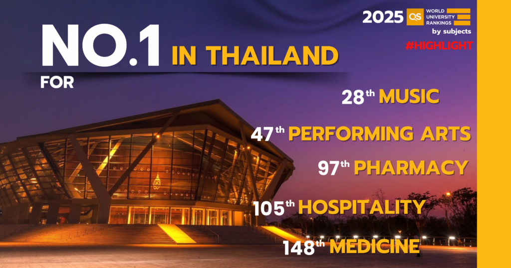 EZ Webmaster March 14, 2025 EZ Webmaster March 14, 2025 มหาวิทยาลัยมหิดล ได้รับการจัดอันดับเป็นที่ 1 ของไทย 8 สาขาวิชา จาก QS World University Rankings by Subject 2025 มหาวิทยาลัยมหิดล ได้รับการจัดอันดับเป็นที่ 1 ของไทย จากการจัดอันดับของ QS World University Rankings by Subject 2025 จำนวน 8 สาขาวิชา จากทั้งหมด 60 สาขาวิชา (5 สาขาวิชาหลัก และ 55 สาขาวิชาเฉพาะ) ซึ่งมีการประกาศผลอย่างเป็นทางการเมื่อวันที่ 12 มีนาคม 2568 โดย มหาวิทยาลัยมหิดล เป็นอันดับ 1 ของไทย ใน 8 สาขาวิชา (1 สาขาวิชาหลัก และ 7 สาขาวิชาเฉพาะ) 1 สาขาวิชาหลัก ได้แก่ Life Sciences and Medicine (อันดับที่ 106 ของโลก) และ 7 สาขาวิชาเฉพาะ ได้แก่ Music (อันดับที่ 28 ของโลก), Performing Arts (อันดับที่ 47 ของโลก), Pharmacy and Pharmacology (อันดับที่ 97 ของโลก), Hospitality and Leisure Management (อันดับที่ 105 ของโลก), Medicine (อันดับที่ 148 ของโลก), Anatomy and Physiology (อันดับที่ 244 ของโลก) และ Biological Sciences (อันดับที่ 245 ของโลก) ผลการจัดอันดับดังกล่าวแสดงให้เห็นอันดับที่ดีขึ้นของมหาวิทยาลัยมหิดลในสาขาวิชา Music และ Performing Arts ที่ถูกจัดอันดับให้เป็น Top50 ของโลก และสาขาวิชา Pharmacy and Pharmacology ที่กลับเข้ามาอยู่ใน Top100 ของโลกอีกครั้ง