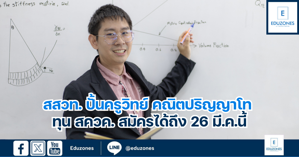 🇬🇧 Newcastle University เปิดทุนเรียนต่อปี 2026 EZ WebmasterDecember 18, 2025 🇬🇧 Newcastle University เปิดทุนเรียนต่อปี 2026 คนไทยมีสิทธิ์สมัคร รับทุนสูงสุดค่าเรียนเต็มจำนวน พร้อม GREAT Scholarship มูลค่า £10,000 รัฐบาลสหราชอาณาจักร ร่วมกับ Newcastle University มหาวิทยาลัยของรัฐชั้นนำในเครือ Russell… เปิดรับสมัครทุน “สร้างคน สร้างบัณฑิต” รุ่นที่ 25/2569 EZ WebmasterDecember 17, 2025 📣 เปิดรับสมัครทุน “สร้างคน สร้างบัณฑิต” รุ่นที่ 25/2569 โอกาสทางการศึกษาสำหรับเยาวชนไทย ที่ไม่ได้มุ่งแค่ให้ “โตได้” แต่ต้อง “โตดี” มูลนิธิดำรงชัยธรรม ประกาศเปิดรับสมัครคัดเลือกผู้สมัครเข้ารับ โครงการทุน “สร้างคน สร้างบัณฑิต” รุ่นที่ 25… Swedish Institute เปิดรายชื่อหลักสูตร ป.โท ที่สมัครทุน SI Scholarships ปี 2026/2027 แล้ว EZ WebmasterDecember 16, 2025 🇸🇪🎓 Swedish Institute เปิดรายชื่อหลักสูตร ป.โท ที่สมัครทุน SI Scholarships ปี 2026/2027 แล้ว โอกาสเรียนต่อสวีเดนกว่า 400 หลักสูตร จาก 29 มหาวิทยาลัยชั้นนำ รัฐบาลสวีเดนโดย… Jeonbuk National University (JBNU) เปิดรับสมัครทุนบัณฑิตศึกษา ปี 2569 EZ WebmasterDecember 16, 2025 🇰🇷🎓 Jeonbuk National University (JBNU) เปิดรับสมัครทุนบัณฑิตศึกษา ปี 2569 ทุนเรียนต่อปริญญาโท–เอก ประเทศเกาหลีใต้ สำหรับนักศึกษาต่างชาติ ผู้ที่สนใจศึกษาต่อระดับ ปริญญาโทและปริญญาเอก ในประเทศเกาหลีใต้ ไม่ควรพลาดโอกาสนี้Jeonbuk National University (JBNU)… ครู-อาจารย์ ท็อปส์แคร์ ในเครือเซ็นทรัล รีเทล สร้างปรากฎการณ์ผนึก 5 คณะเภสัชฯ ชั้นนำครั้งแรก เปิดตัวโครงการ “TOPS CARE Academic Partnership 2025” รับเมะกะเทรนด์ เวลเนสบูม หนุนสร้างเภสัชกรรุ่นใหม่ตอบรับยุคสุขภาพมาแรง EZ WebmasterDecember 19, 2025 ท็อปส์แคร์ ในเครือเซ็นทรัล รีเทล สร้างปรากฎการณ์ผนึก 5 คณะเภสัชฯ ชั้นนำครั้งแรก เปิดตัวโครงการ “ TOPS CARE Academic Partnership 2025 ” รับเมะกะเทรนด์ เวลเนสบูม หนุนสร้างเภสัชกรรุ่นใหม่ตอบรับยุคสุขภาพมาแรง กรุงเทพฯ… ม.มหิดล ร่วมมือ ฮาร์วาร์ด – เอ็มไอที เชื่อมองค์ความรู้ระดับโลก เร่งผลักดันแผน “Medical Disruption” สร้าง Real World Impact ด้านสุขภาพ พลิกโฉมสาธารณสุขไทย EZ WebmasterDecember 19, 2025 ม.มหิดล ร่วมมือ ฮาร์วาร์ด – เอ็มไอที เชื่อมองค์ความรู้ระดับโลก เร่งผลักดันแผน “Medical Disruption” สร้าง Real World Impact ด้านสุขภาพ พลิกโฉมสาธารณสุขไทย กรุงเทพฯ 17 ธันวาคม 2568 – มหาวิทยาลัยมหิดล เดินหน้าขับเคลื่อนแผน “Medical… สมศ. จับมือโรงเรียนพระตำหนักสวนกุหลาบ จัดกิจกรรมเทคโนโลยีสานพลังการเรียนรู้สู่คุณภาพสถานศึกษา EZ WebmasterDecember 19, 2025 สมศ. จับมือโรงเรียนพระตำหนักสวนกุหลาบ จัดกิจกรรมเทคโนโลยีสานพลังการเรียนรู้สู่คุณภาพสถานศึกษา ศาสตราจารย์ ดร.องอาจ นัยพัฒน์ ผู้อำนวยการ สมศ. พร้อมด้วยผู้บริหารและบุคลากร สมศ. ลงพื้นที่ ณ โรงเรียนพระตำหนักสวนกุหลาบ โดยได้รับการสนับสนุนจาก ดร.เมตตา ศรีเกื้อกลิ่น ผู้อำนวยการ ตลอดจนผู้บริหาร… สมัครด่ว