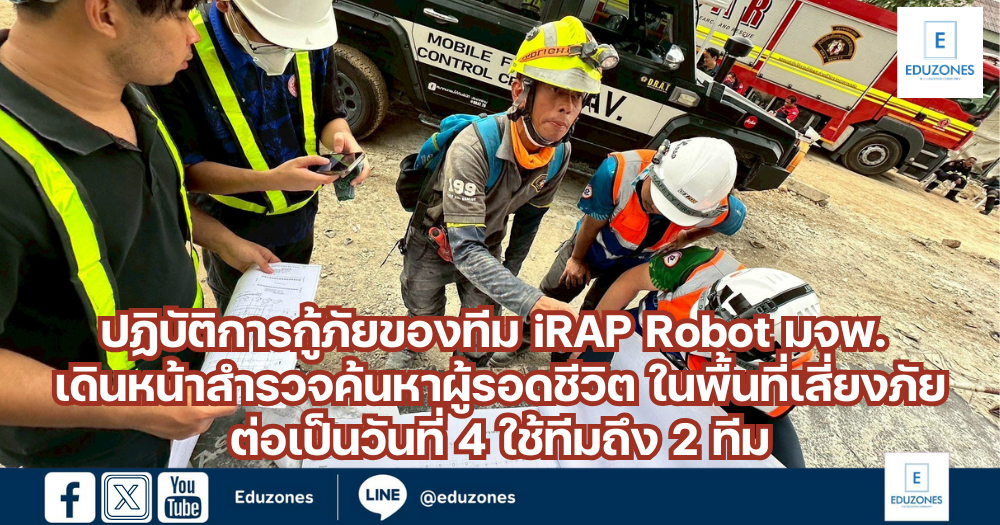EZ Webmaster March 31, 2025 EZ Webmaster March 31, 2025 ปฏิบัติการกู้ภัยของทีม iRAP Robot มจพ. เดินหน้าสำรวจค้นหาผู้รอดชีวิต ในพื้นที่เสี่ยงภัยต่อเป็นวันที่ 4 ใช้ทีมถึง 2 ทีม ทีมหุ่นยนต์กู้ภัย “iRAP Robot” มหาวิทยาลัยเทคโนโลยีพระจอมเกล้าพระนครเหนือ (มจพ.) ลงพื้นที่ช่วยเหลือผู้ประสบภัยฯ ตึกสำนักงานการตรวจเงินแผ่นดิน (สตง.) ถล่ม จากเหตุแผ่นดินไหว พร้อมเดินหน้าสำรวจค้นหาผู้รอดชีวิตในพื้นที่เสี่ยงภัยต่อ นับจากวันที่ 28-31 มีนาคม 2568 วันนี้เป็นวันที่ 4 แล้ว โดยทีมหุ่นยนต์กู้ภัย “iRAP Robot” มจพ. มีผู้ประสานงานหลักทีมหุ่นยนต์กู้ภัย คือ นายพัฒนเดช ศรีอนันต์ ชื่อเล่น “แพท” หรือ โก๋แพท เป็นนักศึกษาสาขาวิชาเทคโนโลยีวิศวกรรมแมคคาทรอนิกส์ วิทยาลัยเทคโนโลยีอุตสาหกรรม มหาวิทยาลัยเทคโนโลยีพระจอมเกล้าพระนครเหนือ (มจพ.) แจ้งความคืบหน้าตลอดบนเฟซบุ๊ก https://www.facebook.com/iraprobot ทีมหุ่นยนต์กู้ภัย “iRAP Robot” รายงานสถานการณ์ถึงปฏิบัติการกู้ภัยของทีม iRAP Robot (KMUTNB) ที่เตรียมความพร้อมและได้เริ่มต้นภารกิจกู้ภัย โดยร่วมมือกับทีมกู้ภัยหน่วยต่างๆ เพื่อช่วยเหลือผู้ประสบภัย ด้วยการใช้เทคโนโลยีหุ่นยนต์ที่พัฒนาโดยทีม iRAP Robot (KMUTNB) ในการสร้างแผนที่และสำรวจพื้นที่ที่มีความเสี่ยงสูง ซึ่งมนุษย์ไม่สามารถเข้าถึงได้หรือมีอันตราย นำหุ่นยนต์กู้ภัย 2 -3 ตัว ในแต่ละวันจัดสรรไม่เหมือนกันตามภารกิจทั้งติดตั้งเซ็นเซอร์ LiDAR, กล้องตรวจจับความร้อน, แขนกลหยิบจับ, เซ็นเซอร์วัดออกซิเจน และระบบสร้างแผนที่ 3D รวมถึงหุ่นยนต์กู้ภัยขนาดเล็กที่มีความสามารถคล้ายกันในการสำรวจและสร้างแผนที่ 3D ได้ นอกจากนี้ ทีมยังได้ทดสอบระบบการสื่อสารและการควบคุมระยะไกล เพื่อให้มั่นใจว่าหุ่นยนต์จะสามารถทำงานได้อย่างมีประสิทธิภาพ รวมทั้งยังมีโดรน DJI Matrice 350RTK จำนวน 2 ลำ สำหรับสำรวจทางอากาศ ซึ่ง มจพ. ได้จัดทีมหุ่นยนต์กู้ภัย “iRAP Robot” (KMUTNB) สนับสนุนในการปฎิบัติหน้าที่ครั้งนี้อย่างเต็มความสามารถ การปฏิบัติงานภาคสนาม ทีม iRAP Robot (KMUTNB) ได้ดำเนินการสำรวจพื้นที่ชั้นใต้ดินของตึกที่ถล่มร่วมกับทีมกู้ภัย USAR ในเขตพื้นที่ที่มีความเสี่ยงสูงและอันตรายต่อผู้ปฏิบัติงาน จึงได้ส่งหุ่นยนต์ลงไปสำรวจและสร้างแผนที่ 3D ในรอบแรก ขณะนี้กำลังดำเนินการวิเคราะห์ข้อมูลแผนที่ 3D ที่ได้จากการใช้หุ่นยนต์สแกนข้อมูลสภาพแวดล้อม เพื่อใช้ประกอบการตัดสินใจของเจ้าหน้าที่กู้ภัย ทีมหุ่นยนต์กู้ภัย iRAP Robot (KMUTNB) รายงานสถานการณ์ ปฏิบัติการกู้ภัยของทีม iRAP Robot (KMUTNB) ได้สรุปข้อมูลทั้งหมดเพื่อส่งต่อให้กับทีมเจ้าหน้าที่หน่วยกู้ภัย โดยได้รับความช่วยเหลือจากทางประเทศอิสราเอล โดยการสั่งการจากนายกรัฐมนตรีประเท