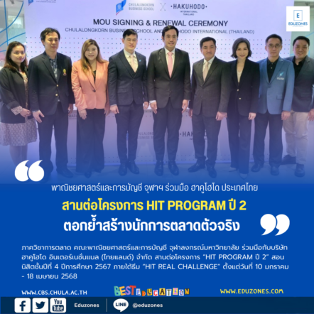 tui sakrapee March 17, 2025 ภาควิชาการตลาด คณะพาณิชยศาสตร์และการบัญชี จุฬาฯ ร่วมมือ ฮาคูโฮโด ประเทศไทย สานต่อโครงการ HIT PROGRAM ปี 2 ตอกย้ำสร้างนักการตลาดตัวจริง tui sakrapee March 17, 2025 ภาควิชาการตลาด คณะพาณิชยศาสตร์และการบัญชี จุฬาลงกรณ์มหาวิทยาลัย ร่วมมือกับบริษัท ฮาคูโฮโด อินเตอร์เนชั่นแนล (ไทยแลนด์) จำกัด สานต่อโครงการ “HIT PROGRAM ปี 2” สอนนิสิตชั้นปีที่ 4 ปีการศึกษา 2567 ภายใต้ธีม “HIT REAL CHALLENGE” ตั้งแต่วันที่ 10 มกราคม – 18 เมษายน 2568 รศ.ดร.ธารทัศน์ โมกขมรรคกุล คณบดีคณะพาณิชยศาสตร์และการบัญชี จุฬาฯ… Continue Reading