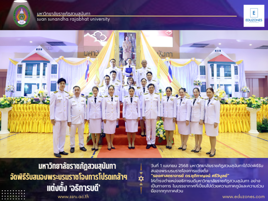 วันที่ 1 เมษายน 2568 มหาวิทยาลัยราชภัฏสวนสุนันทาได้จัดพิธีรับสนองพระบรมราชโองการแต่งตั้ง “รองศาสตราจารย์ ดร.ชุติกาญจน์ ศรีวิบูลย์” ให้ดำรงตำแหน่งอธิการบดีมหาวิทยาลัยราชภัฏสวนสุนันทาอย่างเป็นทางการ