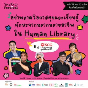 EZ Webmaster April 18, 2025 EZ Webmaster April 18, 2025 มูลนิธิเอสซีจี จับมือ อินสครู เปิดโลกกว้างให้คุณครู ได้เรียนรู้และเข้าใจทักษะอาชีพใหม่ๆ ในโลกปัจจุบัน มูลนิธิเอสซีจี ร่วมกับ บริษัท อินสครู จำกัด จัดกิจกรรม Human Library by มูลนิธิเอสซีจี ภายในงาน “insKru Festival 2025 มหกรรมไอเดียการสอน ตอน Keep ครู Stay ครู เป็นตัวเองในวันที่ฉันเป็นครู” งานดี ๆ สำหรับคุณครู คนที่อยากเป็นคุณครู และคนทั่วไปที่สนใจเรื่องราวในแวดวงการศึกษา ที่จะสร้างแรงบันดาลใจในการเลือกสร้างสรรค์การเรียนรู้ในแบบของตัวเอง สำหรับกิจกรรม Human Library นี้ จัดขึ้นเพื่อร่วมเปิดโลกทัศน์ให้กับคุณครูได้มีโอกาสเรียนรู้และเข้าใจทักษะอาชีพในโลกปัจจุบันที่มีอาชีพมากมายที่กำลังได้รับความนิยม เช่น นักบำบัด UX/UI Designer นักเขียน นักวาดการ์ตูน นักข่าว ฯลฯ เพื่อให้คุณครูสามารถนำไปถ่ายทอดให้เด็กๆ ในห้องเรียนตามแนวคิด Learn to Earn ที่ส่งเสริมให้การเรียนรู้เชื่อมโยงสู่โลกของการทำงานอย่างแท้จริงได้ต่อไป นอกจากนี้ มูลนิธิเอสซีจี ยังได้สนับสนุนวิทยากรจาก 3 สายวิชาชีพ ผู้ช่วยพยาบาล พยาบาล และทันตแพทย์ เข้าร่วมให้ความรู้ในกิจกรรมครั้งนี้ด้วย ไปร่วมรับฟังและร่วมพูดคุยกันได้ที่งาน insKru Festival 2025 ในวันเสาร์และอาทิตย์ที่ 26-27 เมษายน 2568 นี้ ณ อาคาร True Digital Park (East Wing) ชั้น 6-7 ตั้งแต่เวลา 09.30-18.00 น. ดูรายละเอียดเพิ่มเติมได้ที่ https://inskru.com/inskru-festival/