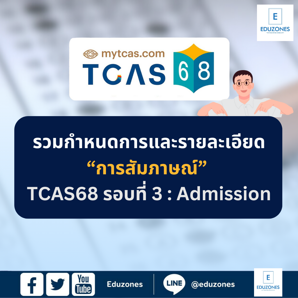 EZ Webmaster May 20, 2025 EZ Webmaster May 20, 2025 รวมกำหนดการและรายละเอียด “การสัมภาษณ์” TCAS68 รอบที่ 3 : Admission ของแต่ละมหาวิทยาลัย รวมกำหนดการและรายละเอียด “การสัมภาษณ์” #TCAS68 รอบที่ 3 : Admission หลังจากประกาศผลคัดเลือก TCAS68 รอบที่ 3: Admission เมื่อวันที่ 20 พฤษภาคมที่ผ่านมา ตอนนี้หลายมหาวิทยาลัยได้ทยอยแจ้งกำหนดการสอบสัมภาษณ์ออกมาแล้ว ซึ่งเป็นขั้นตอนสำคัญที่น้องๆ ต้องผ่านให้ได้ เพื่อยืนยันสิทธิ์เข้าศึกษาต่อในรั้วมหาวิทยาลัยอย่างเป็นทางการ สำหรับใครที่ ติดรอบ 3 หลายที่ อย่าลืมว่า สามารถเลือกยืนยันสิทธิ์ได้เพียง 1 สถาบันเท่านั้น และต้องดำเนินการให้เสร็จภายในระยะเวลาที่กำหนด โดยมีรายละเอียดสำคัญดังนี้ 1.กำหนดการและรายละเอียดสัมภาษณ์ มหาวิทยาลัยธรรมศาสตร์ จัดสัมภาษณ์ วันที่ 30-31 พฤษภาคม 68 รายละเอียดเพิ่มเติม คลิกที่นี่ มหาวิทยาลัยศรีนครินทรวิโรฒ จัดสัมภาษณ์ วันที่28-31 พฤษภาคม 68 รายละเอียดเพิ่มเติม คลิกที่นี่ มหาวิทยาลัยเทคโนโลยีพระจอมเกล้าพระนครเหนือ จัดสัมภาษณ์ วันที่29-31 พฤษภาคม68 รายละเอียดเพิ่มเติม คลิกที่นี่ สถาบันเทคโนโลยีพระจอมเกล้าเจ้าคุณทหารลาดกระบัง จัดสัมภาษณ์ วันที่ 29-31 พฤษภาคม 68 รายละเอียดเพิ่มเติม คลิกที่นี่ มหาวิทยาลัยเกษตรศาสตร์ จัดสัมภาษณ์ วันที่ 28-29 พฤษภาคม 68 รายละเอียดเพิ่มเติม คลิกที่นี่ คณะแพทยศาสตร์ มหาวิทยาลัยสงขลานครินทร์ จัดสัมภาษณ์ วันที่ 30 พ.ค.68 (ยกเว้น หลักสูตรแพทยศาสตรบัณฑิต ที่รับผ่าน กสพท วันที่ 4 มิ.ย.68) คลิกที่นี่ มหาวิทยาลัยแม่ฟ้าหลวง จัดสัมภาษณ์ เฉพาะสาขาวิชาพยาบาลศาสตร์ แบบออนไลน์ วันที่ 28 เม.ย.68 คลิกที่นี่ สำหรับน้องๆ ที่ผ่านเข้ารอบนี้แล้ว ขอแสดงความยินดีด้วยนะคะ ขอให้ทุกคนเตรียมตัวให้ดีที่สุด และสัมภาษณ์ผ่านฉลุย ได้เข้าเรียนในคณะที่หวังไว้ s หากต้องการอัปเดตกำหนดการสัมภาษณ์เพิ่มเติม สามารถติดตามได้ที่เว็บไซต์ของมหาวิทยาลัยโดยตรง หรือหน้าเพจของเรา เราจะรวมข้อมูลมาให้อัปเดตเรื่อยๆ! ขอบคุณเพจที่มา P’Dome โคชให้ติด TCAS