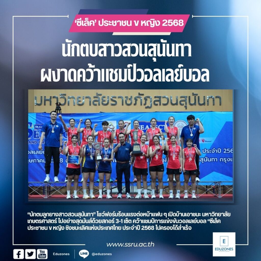 tui sakrapee May 24, 2025 tui sakrapee May 24, 2025 นักตบสาวสวนสุนันทา ผงาดคว้าแชมป์วอลเลย์บอล ซีเล็ค ประชาชน ข หญิง ชิงแชมป์ประเทศไทย ปี 2568 เมื่อวันที่ 15 พฤษภาคม 2568 เวลา 11.30 น. ณ สนามกีฬาอาคารศูนย์สุขภาพและกีฬา ชั้น 4 มหาวิทยาลัยราชภัฏสวนสุนันทา กรุงเทพมหานคร ได้มีการแข่งขันวอลเลย์บอล “ซีเล็ค ประชาชน ข หญิง ชิงชนะเลิศแห่งประเทศไทย ประจำปี 2568” โดยรอบชิงชนะเลิศเป็นการพบกันระหว่าง มหาวิทยาลัยราชภัฏสวนสุนันทา เจ้าบ้าน พบกับทีมแกร่งอย่าง มหาวิทยาลัยเกษตรศาสตร์ ผลการแข่งขันปรากฏว่า “นักตบลูกยางสาวสวนสุนันทา” โชว์ฟอร์มร้อนแรงต่อหน้าแฟน ๆ เปิดบ้านเอาชนะ มหาวิทยาลัยเกษตรศาสตร์ ไปอย่างสุดมันส์ด้วยสกอร์ 3-1 เซ็ต คว้าแชมป์รายการนี้ไปครองได้สำเร็จ ผลการแข่งขันรายเซ็ต เซ็ตที่ 1: สวนสุนันทา ชนะ 25-22 เซ็ตที่ 2: เกษตรศาสตร์ ชนะ 25-23 เซ็ตที่ 3: สวนสุนันทา ชนะ 25-20 เซ็ตที่ 4: สวนสุนันทา ชนะ 25-20 ในพิธีปิดและมอบรางวัล ได้รับเกียรติจาก ผู้ช่วยศาสตราจารย์ ดร.สมศักดิ์ คล้ายสังข์ รองอธิการบดีฝ่ายกิจการนักศึกษา มหาวิทยาลัยราชภัฏสวนสุนันทา เป็นประธาน พร้อมด้วย นายทรงศักดิ์ เจริญพงศ์ ผู้แทนจากสมาคมกีฬาวอลเลย์บอลแห่งประเทศไทย ร่วมเป็นเกียรติในพิธี นอกจากนี้ ทีมสวนสุนันทายังสร้างผลงานโดดเด่น คว้ารางวัลพิเศษเพิ่มอีก 2 รายการ ได้แก่ รางวัลนักกีฬายอดเยี่ยม: นางสาวชนกนันท์ แสบงบาล (หมายเลข 9) รางวัลผู้ฝึกสอนยอดเยี่ยม: นายนพดล ยะอนันต์ สรุปผลการแข่งขันรอบชิงชนะเลิศ ชนะเลิศ: มหาวิทยาลัยราชภัฏสวนสุนันทา รองชนะเลิศอันดับ 1: มหาวิทยาลัยเกษตรศาสตร์ รองชนะเลิศอันดับ 2: โรงเรียนเทพมงคลรังษี พลังกาญจน์ รองชนะเลิศอันดับ 3: KKU Volleyball Academy สอบถามข้อมูลเพิ่มเติมติดต่อฝ่ายกีฬาและส่งเสริมสุขภาพ กองพัฒนานักศึกษา มหาวิทยาลัยราชภัฏสวนสุนันทาโทร. 02-160-1356เว็บไซต์: www.sdd.ssru.ac.th
