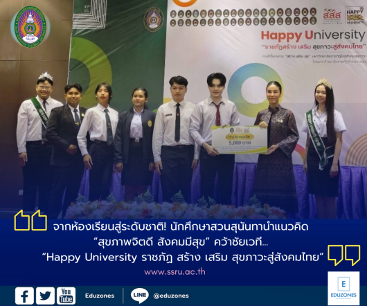 tui sakrapee May 30, 2025 จากห้องเรียนสู่ระดับชาติ! นักศึกษาสวนสุนันทานำแนวคิด “สุขภาพจิตดี สังคมมีสุข” คว้าชัยเวที “Happy University ราชภัฏ สร้าง เสริม สุขภาวะสู่สังคมไทย” tui sakrapee May 30, 2025 กรุงเทพฯ – นักศึกษาจากมหาวิทยาลัยราชภัฏสวนสุนันทา สร้างชื่อเสียงคว้ารางวัลชนะเลิศและรองชนะเลิศจากเวที “Happy University ราชภัฏ สร้าง เสริม สุขภาวะสู่สังคมไทย” ซึ่งจัดขึ้นระหว่างวันที่ 22–23 พฤษภาคม 2568 ณ มหาวิทยาลัยราชภัฏจันทรเกษม กรุงเทพมหานคร ภายใต้โครงการ “สร้าง เสริม สุข มหาวิทยาลัยราชภัฏไปสู่สังคมสุขภาวะ” โดยมีนักศึกษาจากมหาวิทยาลัยราชภัฏทั่วประเทศเข้าร่วม การแข่งขันในครั้งนี้เปิดโอกาสให้นักศึกษาได้นำเสนอแนวคิดสร้างสรรค์ในรูปแบบโครงงานภายใต้หัวข้อ “สร้าง เสริม สุข” โดยใช้กรอบแนวคิด “ความสุข 8 ประการ (Happy… Continue Reading