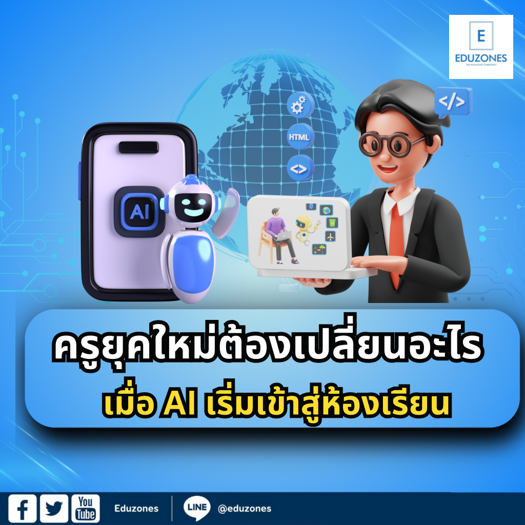 EZ Webmaster June 23, 2025 EZ Webmaster June 23, 2025 ครูยุคใหม่ต้องเปลี่ยนอะไร? เมื่อ AI เริ่มเข้าสู่ห้องเรียน ครูยุคใหม่ต้องเปลี่ยนอะไร? เมื่อ AI เริ่มเข้าสู่ห้องเรียน ในยุคที่เทคโนโลยี AI พัฒนาอย่างรวดเร็ว การศึกษาเองก็เปลี่ยนไปอย่างมาก หลายคนอาจตั้งคำถามว่า “เมื่อ AI สอนหนังสือได้ ครูยังจำเป็นอยู่ไหม?” แต่ในความจริง ครูไม่ได้หายไป กลับมีบทบาทสำคัญยิ่งกว่าเดิม โดยเฉพาะในฐานะผู้เชื่อมโยงเทคโนโลยีกับ “หัวใจมนุษย์” 1. จากผู้สอน สู่ผู้ออกแบบการเรียนรู้ AI ให้ข้อมูลได้แทบทุกอย่าง แต่ยัง “จัดประสบการณ์การเรียนรู้” ไม่ได้ครูจึงต้อง: • วางแผนบทเรียนให้เหมาะกับผู้เรียนแต่ละคน • ใช้ AI ปรับระดับความยากง่ายของเนื้อหา • สร้างกิจกรรมที่กระตุ้นการคิดวิเคราะห์ 2. ครู = โค้ช และที่ปรึกษาทางอารมณ์ AI เข้าใจข้อมูล แต่ไม่เข้าใจ “ความรู้สึก”ครูยังจำเป็นในการ: • ให้คำแนะนำทางอารมณ์และแรงจูงใจ • ช่วยนักเรียนตั้งเป้าหมายการเรียนรู้ • สร้างความสัมพันธ์ที่ดีในชั้นเรียน 3. ครูกับ AI = ทีมเวิร์ก ไม่ใช่คู่แข่ง AI ไม่ได้มาแทนที่ครู แต่ช่วยแบ่งเบาภาระครูสามารถ: • ใช้ AI วิเคราะห์ผลการเรียน • ใช้แชทบอทช่วยตอบคำถามพื้นฐาน • ปล่อยให้ AI ตรวจการบ้าน เพื่อมีเวลาโฟกัสพัฒนานักเรียน 4. สอนสิ่งที่ AI ยังทำไม่ได้ — Soft Skills แม้ AI จะเก่งเรื่องข้อมูล แต่ยังสอนไม่ได้ดีเรื่อง: • การคิดเชิงวิพากษ์ • การทำงานเป็นทีม • ความเห็นอกเห็นใจ • ความรับผิดชอบต่อสังคม 5. ครูก็ต้องเรียนรู้ตลอดชีวิต (Lifelong Learning) โลกเปลี่ยนเร็ว ครูก็ต้องปรับตัวให้ทัน: • อัปเดตเทคโนโลยีใหม่ ๆ • เข้าร่วมอบรมหรือเรียนรู้ออนไลน์ • แบ่งปันความรู้ผ่านชุมชนครู (PLC) 6. ครูในโลกการเรียนรู้แบบยืดหยุ่น เมื่อการเรียนรู้เกิดได้ทุกที่ ไม่ใช่แค่ในห้องเรียน: • ครูต้องจัดกิจกรรมผ่านระบบออนไลน์/ไฮบริด • ใช้แพลตฟอร์ม LMS เพื่อติดตามนักเรียน • ออกแบบภารกิจหรือโครงการที่เชื่อมโยงกับชีวิตจริง AI เปลี่ยนแปลงเครื่องมือ แต่ “ครู” ยังเป็นหัวใจของการเรียนรู้ แม้ AI จะช่วยสอนและจัดการข้อมูลได้รวดเร็ว แต่ยังไม่อาจเข้าใจความรู้สึก หรือสร้างแรงบันดาลใจได้เหมือนครูครูในยุคนี้จึงไม่ใช่แค่ผู้สอน แต่เป็นผู้ออกแบบประสบการณ์ โค้ชผู้เข้าใจนักเรียน และผู้นำการเปลี่ยนแปลงเพราะสุดท้าย… อนาคตขอการศึกษาอาจอยู่ในมือของเทคโนโลยีแต่หัวใจของการเรียนรู้อยู่ที่ “ครู” เสมอ