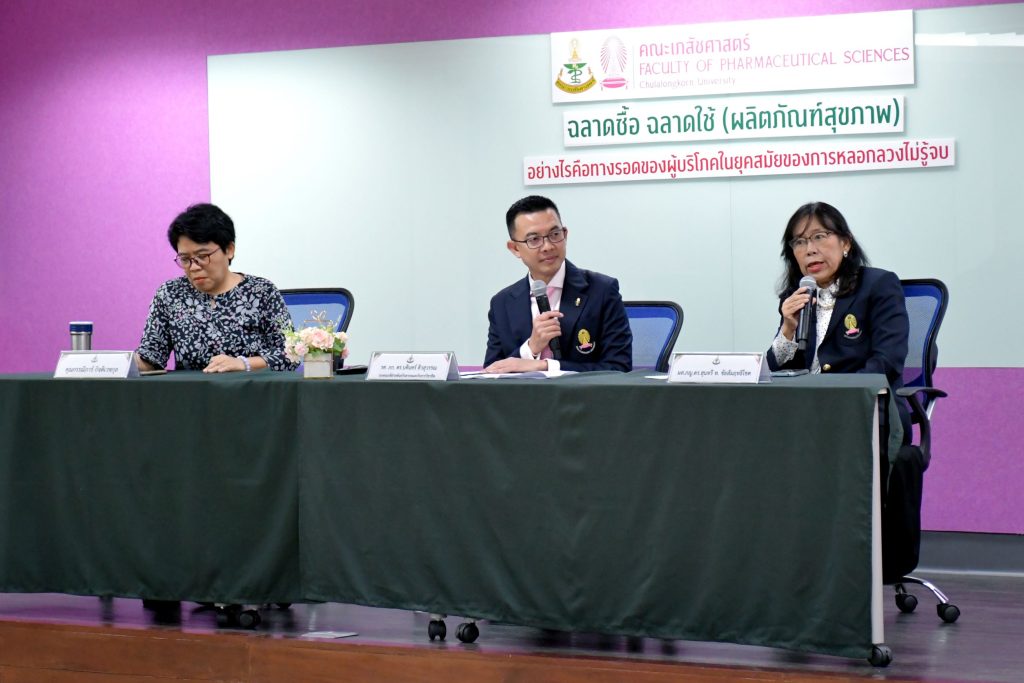 EZ Webmaster June 27, 2025 EZ Webmaster June 27, 2025 คณะเภสัชฯ จุฬาฯ เตือนภัย!! ผลิตภัณฑ์เสริมอาหาร “ซิงก์ ไบโอติน พลัส” ปลอม ให้ความรู้ผู้บริโภครู้เท่าทันกลโกงรูปแบบต่าง ๆ ทางแพลตฟอร์มออนไลน์ คณะเภสัชศาสตร์ จุฬาฯ จัดงานแถลงข่าวเตือนภัยผลิตภัณฑ์เสริมอาหาร “ซิงก์ ไบโอติน พลัส” ปลอม ในท้องตลาด เพื่อแจ้งเตือนภัยผู้บริโภคให้รู้เท่าทันกลโกงในรูปแบบต่าง ๆ พร้อมจัดเสวนาวิชาการ “ฉลาดซื้อ ฉลาดใช้ (ผลิตภัณฑ์สุขภาพ) อย่างไรคือทางรอดของผู้บริโภคในยุคสมัยของการหลอกลวงไม่รู้จบ” โดย รศ.ภก.ดร.บดินทร์ ติวสุวรรณ รองคณบดีฝ่ายพันธกิจสากลและกิจการวิชาชีพ คณะเภสัชศาสตร์ จุฬาฯ ผศ.ภญ.ดร.สุนทรี ท.ชัยสัมฤทธิ์โชค ภาควิชาเภสัชศาสตร์สังคมและบริหาร คณะเภสัชศาสตร์ จุฬาฯ คุณกรรณิการ์ กิจติเวชกุล ผู้ดำเนินรายการ “เช้าทันโลก” FM 96.5 และอนุกรรมการอาหาร ยา และผลิตภัณฑ์สุขภาพ สภาองค์กรของผู้บริโภค และ ภก.อิษฎา มโนหรทัต ผู้จัดการฝ่ายดำเนินการด้านผลิตภัณฑ์สุขภาพ บริษัทจุฬาฟาร์เทค จำกัด เมื่อวันที่ 24 มิถุนายน 2568 ณ ห้อง 402 อาคาร 80 ปี เภสัชศาสตร์ จุฬาฯ คณะเภสัชศาสตร์ จุฬาฯ โดยบริษัท จุฬาฟาร์เทค จำกัด ในฐานะผู้ผลิต “ซิงก์ ไบโอติน พลัส” ผลิตภัณฑ์เสริมอาหารที่ช่วยบำรุงเส้นผมและเล็บ ช่วยเสริมความเงางาม ได้รับการร้องเรียนจากผู้บริโภคว่าผลิตภัณฑ์ดังกล่าวที่มีจำหน่ายผ่านช่องทางออนไลน์ต่าง ๆ อย่างแพร่หลายว่าเป็นของปลอมหรือไม่ เนื่องจากมีการเปลี่ยนแปลงภาชนะบรรจุของผลิตภัณฑ์เสริมอาหาร เมื่อเปิดขวดแล้วกลิ่นวานิลลาและซองกันชื้นมีลักษณะเปลี่ยนแปลงไปมาก บริษัท จุฬาฟาร์เทค จำกัด ได้ตรวจสอบพบว่ามีการจำหน่ายผลิตภัณฑ์เสริมอาหารปลอมจริง เป็นการปลอม “ซิงก์ ไบโอติน พลัส” (ฉลากระบุเลขสารบนอาหาร 19-1-21959-5-0014) และ “ซิงก์ อะมิโน แอซิด คีเลต ผสมไบโอติน” (ฉลากระบุเลขสารบนอาหาร 19-1-21959-5-0005) และใช้ฉลากเสมือนจริง จำหน่ายในหลายช่องทางออนไลน์ เช่น TikTok Shop และ Shopee. จากนั้นจึงได้ส่งผลิตภัณฑ์เสริมอาหารปลอมทั้งสองรายการเข้าตรวจสอบหาสารสำคัญ ทั้งนี้ คณะเภสัชศาสตร์ จุฬาฯ ได้นำหลักฐานเข้าแจ้งความต่อกองบังคับการปราบปรามการกระทำความผิดเกี่ยวกับการคุ้มครองผู้บริโภค (บก.ปคบ.). ขอให้เร่งดำเนินการเอาผิดกับผู้ผลิตผลิตภัณฑ์เสริมอาหารปลอมทั้งสองรายการนี้ และได้ส่งเรื่องให้เลขาธิการคณะกรรมการอาหารและยา (อย.). เมื่อวันที่ 28 และ 30 พฤษภาคม ตามลำดับ ผลการตรวจวิเคราะห์คุณสมบัติทางเคมีของผลิตภัณฑ์เสริมอาหารปลอมทั้งสองรายการ เมื่อวันที่ 6 มิถุนายน 2568 ยืนยันว่าไม่พบสารสำคัญใด ๆ ทั้งตัวซิงก์ ไบโอติน และซีเลเนียม ผลิตภัณฑ์เ