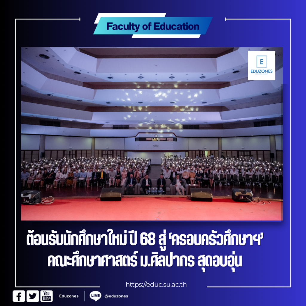 tui sakrapee July 15, 2025 tui sakrapee July 15, 2025 ต้อนรับนักศึกษาใหม่ ปี 68 สู่ “ครอบครัวศึกษาฯ”คณะศึกษาศาสตร์ ม.ศิลปากร สุดอบอุ่น คณะศึกษาศาสตร์ มหาวิทยาลัยศิลปากร จัดกิจกรรม “ครอบครัวศึกษาฯ” ต้อนรับนักศึกษาใหม่ ปี 2568 อย่างอบอุ่น เมื่อวันที่ 30 มิถุนายน พ.ศ. 2568 คณะศึกษาศาสตร์ มหาวิทยาลัยศิลปากร ได้จัดกิจกรรมต้อนรับนักศึกษาใหม่ภายใต้ชื่อ “ครอบครัวศึกษาฯ” ณ ศูนย์ศิลปวัฒนธรรมเฉลิมพระเกียรติ 6 รอบพระชนมพรรษา มหาวิทยาลัยศิลปากร วิทยาเขตพระราชวังสนามจันทร์ เพื่อเปิดประตูต้อนรับสมาชิกใหม่เข้าสู่ชุมชนแห่งการเรียนรู้ที่เต็มไปด้วยความสุข ความอบอุ่น และความภาคภูมิใจในความเป็น “ศึกษาศาสตร์ ศิลปากร” กิจกรรมดังกล่าวมีวัตถุประสงค์เพื่อสร้างแรงบันดาลใจ ปลูกฝังอัตลักษณ์ และสร้างความผูกพันในหมู่เพื่อนร่วมรุ่นและพี่ ๆ ภายในคณะ โดยภายในงานได้รับเกียรติจาก ศาสตราจารย์ ดร.คณิต เขียววิชัย คณบดีคณะศึกษาศาสตร์ พร้อมด้วยคณะผู้บริหาร คณาจารย์ บุคลากร และพี่ ๆ นักศึกษาจากทุกชั้นปีร่วมให้การต้อนรับอย่างใกล้ชิด สะท้อนภาพลักษณ์ของ “องค์กรแห่งความสุข” ตามวิสัยทัศน์ของคณะฯ หนึ่งในไฮไลต์ของงานคือกิจกรรม “มอบป้ายกระดานดำ” ที่ให้นักศึกษาใหม่เขียนชื่อ สาขาวิชาและรหัสของตนเองลงบนป้าย เพื่อนำกลับไปเป็นที่ระลึก เสมือนหนึ่งสัญลักษณ์แห่งการเริ่มต้นว่า “เราเคยเป็นเด็กศึกษาศาสตร์ ศิลปากร” พร้อมกิจกรรมสานสัมพันธ์ สร้างเครือข่ายทางสังคม และจุดประกายความภาคภูมิใจในบทบาทว่าที่ครูต้นแบบในอนาคต การต้อนรับในครั้งนี้ไม่เพียงสะท้อนถึงความใส่ใจของคณะศึกษาศาสตร์ที่มีต่อชีวิตนักศึกษา แต่ยังตอกย้ำคุณค่าแห่งการศึกษาที่มุ่งพัฒนาผู้เรียนให้เป็นทั้งนักวิชาการและมนุษย์ที่สมบูรณ์ในสภาพแวดล้อมที่เต็มไปด้วยพลังบวก สอดคล้องกับปรัชญาและวิสัยทัศน์ของคณะฯ ที่ว่า “ผลิตและพัฒนาครูต้นแบบที่มีความสามารถในการจัดการการเรียนรู้ ทั้งวิชาการและความเป็นมนุษย์ที่สมบูรณ์”