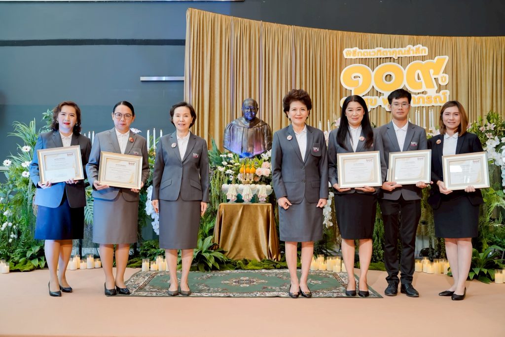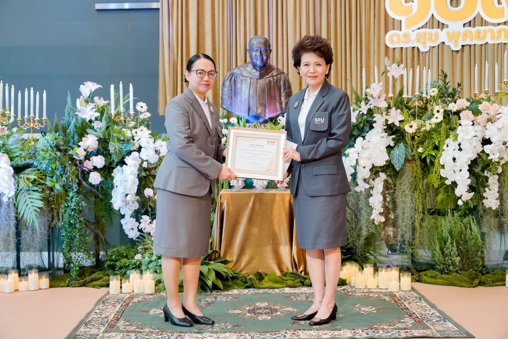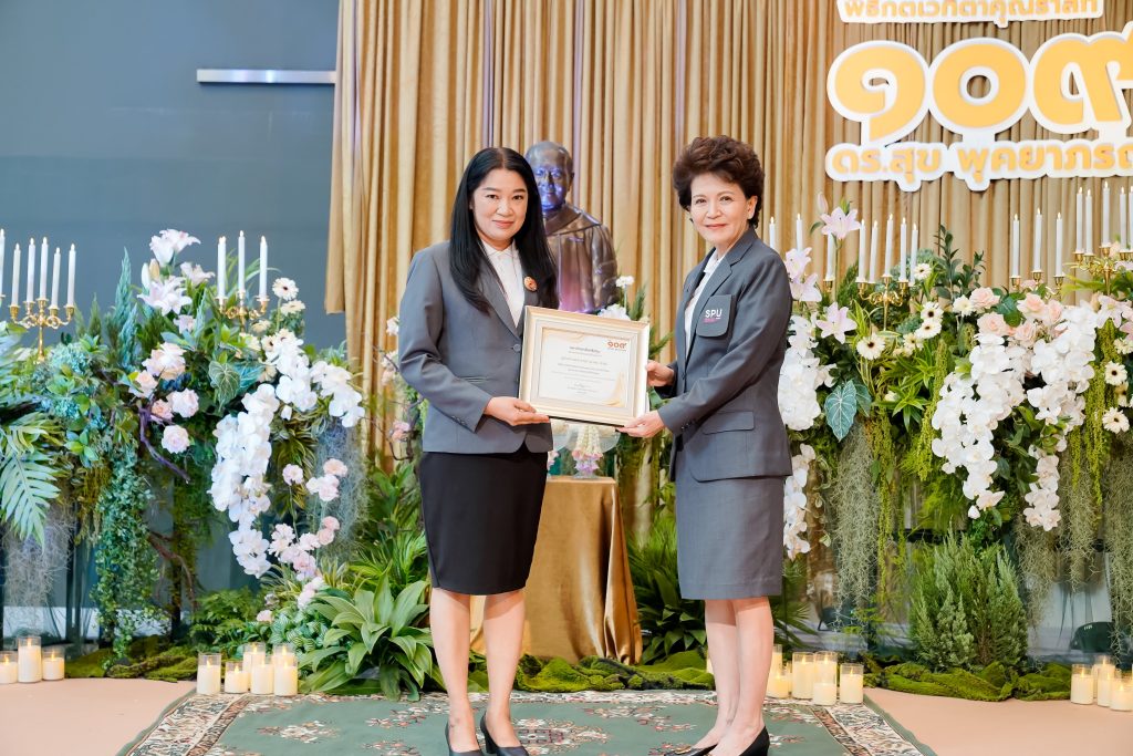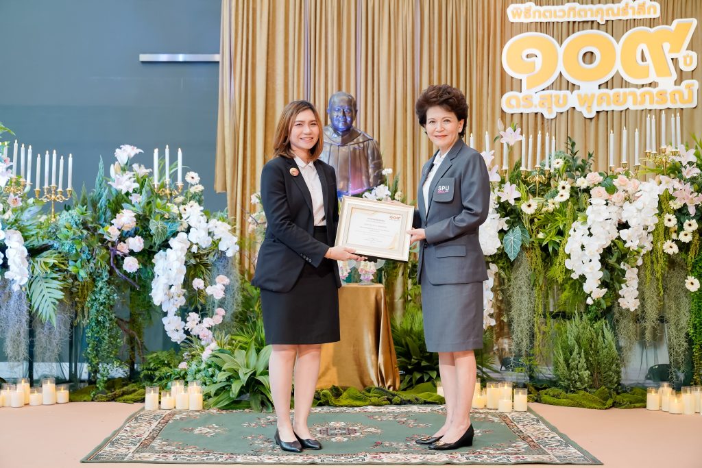 EZ Webmaster July 18, 2025 EZ Webmaster July 18, 2025 ม.ศรีปทุม เชิดชู 5 บุคลากรต้นแบบ มอบรางวัลเกียรติยศ “ดร.สุข พุคยาภรณ์” ประจำปี 2568 มหาวิทยาลัยศรีปทุม (SPU) จัดพิธีมอบ รางวัลเกียรติยศ “ดร.สุข พุคยาภรณ์” ประจำปี 2568 เพื่อเชิดชูบุคลากรผู้ประพฤติปฏิบัติตนเป็นแบบอย่างทั้งด้านความเพียร ความคิดสร้างสรรค์ ความกตัญญู ความพอเพียง และคุณธรรมเมตตาธรรม ณ ชั้น 1 อาคาร 11 มหาวิทยาลัยศรีปทุม กรุงเทพฯ เมื่อวันที่ 17 กรกฎาคม 2568 โดยมี ดร.รัชนีพร พุคยาภรณ์ พุกกะมาน อธิการบดีมหาวิทยาลัยศรีปทุม ให้เกียรติเป็นประธานมอบรางวัล โดยในปีนี้ มีบุคลากรจำนวน 5 ท่านที่ได้รับการคัดเลือกเข้ารับ รางวัลเกียรติยศ “ดร.สุข พุคยาภรณ์” ดังนี้ รางวัลเกียรติยศ “ดร.สุข พุคยาภรณ์” ประจำปี 2568 ประเภทผู้บริหาร 1 รางวัล ได้แก่ ผศ.ธนาพร ปาลกะวงศ์ ณ อยุธยา รองผู้อำนวยการสำนักงานวิชาศึกษาทั่วไป มหาวิทยาลัยศรีปทุม วิทยาเขตชลบุรี ผศ.ธนาพร เริ่มปฏิบัติงานที่มหาวิทยาลัยศรีปทุมตั้งแต่ปี 2542 สำเร็จการศึกษา ศิลปศาสตรมหาบัณฑิต จากมหาวิทยาลัยศรีนครินทรวิโรฒ ในปี 2542 ยึดมั่นในการทำงานด้วยความเรียบง่าย สุภาพ และจริงใจ โดยมองว่า “การดำรงตนด้วยความพอเพียง มุ่งมั่นพัฒนาตนเองอย่างต่อเนื่อง และยึดมั่นในคุณธรรม คือหนทางสู่การสร้างประโยชน์แก่ส่วนรวม และคุณค่าที่ยั่งยืนแก่สังคม” รางวัลเกียรติยศ “ดร.สุข พุคยาภรณ์” ประจำปี 2568 ประเภทอาจารย์ผู้มีผลงานการสอน 2 รางวัล ได้แก่ ดร.อารีย์ ขันติธรรมกุล อาจารย์ประจำสำนักวิชาศึกษาทั่วไป มหาวิทยาลัยศรีปทุม วิทยาเขตชลบุรี ปฏิบัติหน้าที่อาจารย์ประจำมาตั้งแต่ปี 2548 สำเร็จการศึกษา ปรัชญาดุษฎีบัณฑิต สาขาจิตวิทยาการปรึกษา จากมหาวิทยาลัยบูรพา ในปี 2559 ดร.อารีย์ เชื่อมั่นว่า การใช้ชีวิตอย่างเรียบง่าย เมตตาต่อตนเองและผู้อื่น พร้อมยึดมั่นในความดีในทุกบทบาท คือหัวใจสำคัญที่จะนำไปสู่ความสุข ความหมายในชีวิต และการเป็นประโยชน์ต่อสังคม โดยไม่ย่อท้อต่ออุปสรรคที่ผ่านเข้ามาในเส้นทางชีวิต ผศ. วราพร ดำจับ เลขานุการหลักสูตรนิเทศศาสตรมหาบัณฑิต คณะนิเทศศาสตร์ มหาวิทยาลัยศรีปทุม วิทยาเขตชลบุรี ผศ.วราพร ร่วมงานกับมหาวิทยาลัยศรีปทุมตั้งแต่ปี 2545 และยึดมั่นในการพัฒนาตนเองอยู่เสมอ ด้วยความวิริยะ อุตสาหะ และความเพียร พร้อมทั้งประพฤติตนตามหลักพอเพียง มีคุณธรรม และเมตตา มุ่งหวังให้ทุกบทบาทที่ตนรับผิดชอบ ก่อเกิดคุณค่าทั้งต่อตนเองและสังคมอย่างยั่งยืน รางวัลเกียรติยศ “ดร.สุข พุคยาภรณ์” ประจำปี 2568 ประเภทเจ้าหน้าที่ 2 รางวัล ได้แก่ นายคมกฤต สว่างวงษ์ เจ้าหน้าที่สำนักงานสื่อโสตทัศน์และสิ่ง