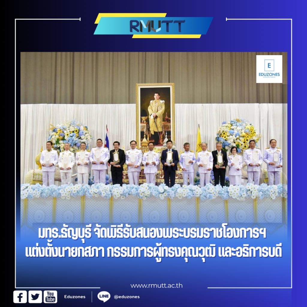 tui sakrapee July 19, 2025 tui sakrapee July 19, 2025 มทร.ธัญบุรี จัดพิธีรับสนองพระบรมราชโองการฯ แต่งตั้งนายกสภา กรรมการผู้ทรงคุณวุฒิ และอธิการบดี มหาวิทยาลัยเทคโนโลยีราชมงคลธัญบุรี (มทร.ธัญบุรี) จัดพิธีรับสนองพระบรมราชโองการโปรดเกล้าโปรดกระหม่อมแต่งตั้งนายกสภามหาวิทยาลัย กรรมการสภามหาวิทยาลัยผู้ทรงคุณวุฒิ และอธิการบดี อย่างสมพระเกียรติและยิ่งใหญ่ ณ หอประชุมราชมงคล มทร.ธัญบุรี จ.ปทุมธานี เมื่อวันที่ 18 กรกฎาคม 2568 พิธีเริ่มต้นเมื่อเวลา 16.00 น. โดยพิธีกรกล่าวต้อนรับและนำเข้าสู่พิธีการอย่างเป็นทางการ เริ่มด้วยการเชิญประกาศสำนักนายกรัฐมนตรี เรื่องการแต่งตั้งบุคคลสำคัญในตำแหน่งต่าง ๆ ขึ้นวางบนพาน ณ โต๊ะหมู่บูชา หน้าพระบรมฉายาลักษณ์พระบาทสมเด็จพระวชิรเกล้าเจ้าอยู่หัว . ผู้ช่วยศาสตราจารย์ณัชติพงศ์ อูทอง รองอธิการบดี เป็นผู้เชิญประกาศแต่งตั้งนายกสภามหาวิทยาลัย ตามด้วยบุคลากรเชิญประกาศแต่งตั้งกรรมการสภามหาวิทยาลัยผู้ทรงคุณวุฒิ จำนวน 14 ราย และ ดร.สุทิศา จันทรบุตร รองอธิการบดี เชิญประกาศแต่งตั้งอธิการบดีมหาวิทยาลัยฯ ในลำดับพิธีสำคัญ พิธีกรได้เชิญ พลเอก ธงชัย เกื้อสกุล นายกสภามหาวิทยาลัย ขึ้นรับพระบรมราชโองการแต่งตั้ง โดยมี ศาสตราจารย์ ดร.กฤษณ์ชนม์ ภูมิกิตติพิชญ์ รองอธิการบดี ปฏิบัติหน้าที่อาลักษณ์ อ่านประกาศสำนักนายกรัฐมนตรีเรื่องแต่งตั้งนายกสภาฯ จากนั้น พลเอก ธงชัย เกื้อสกุล ได้ถวายบังคมเบื้องหน้าพระบรมฉายาลักษณ์ เปิดกรวยกระทงดอกไม้ และรับพระบรมราชโองการฯ . ต่อมา ศาสตราจารย์ ดร.กฤษณ์ชนม์ ภูมิกิตติพิชญ์ ได้อ่านประกาศสำนักนายกรัฐมนตรี เรื่อง แต่งตั้งกรรมการสภามหาวิทยาลัยผู้ทรงคุณวุฒิของมหาวิทยาลัยเทคโนโลยีราชมงคลธัญบุรี และพิธีกรได้เชิญกรรมการสภามหาวิทยาลัยผู้ทรงคุณวุฒิ จำนวน 14 ราย เข้ารับพระบรมราชโองการฯ . ในส่วนของอธิการบดี ศาสตราจารย์ ดร.กฤษณ์ชนม์ ภูมิกิตติพิชญ์ รองอธิการบดี ได้อ่านประกาศสำนักนายกรัฐมนตรี เรื่อง แต่งตั้งอธิการบดีมหาวิทยาลัยเทคโนโลยีราชมงคลธัญบุรี และพิธีกรได้เชิญ รองศาสตราจารย์ ดร.สมหมาย ผิวสอาด อธิการบดีมหาวิทยาลัยเทคโนโลยีราชมงคลธัญบุรี เข้ารับพระบรมราชโองการฯ ช่วงท้ายของพิธี พลเอก ธงชัย เกื้อสกุล ในนามนายกสภามหาวิทยาลัย ได้นำกรรมการสภาผู้ทรงคุณวุฒิ และอธิการบดี ถวายสัตย์ปฏิญาณเบื้องหน้าพระบรมฉายาลักษณ์ แสดงความสำนึกในพระมหากรุณาธิคุณ พร้อมบรรเลงเพลงสรรเสริญพระบารมีอย่างสง่างาม จากนั้น นายกสภามหาวิทยาลัย ผู้แทนกรรมการสภาผู้ทรงคุณวุฒิ และอธิการบดี ได้กล่าวขอบคุณผู้เข้าร่วมพิธี