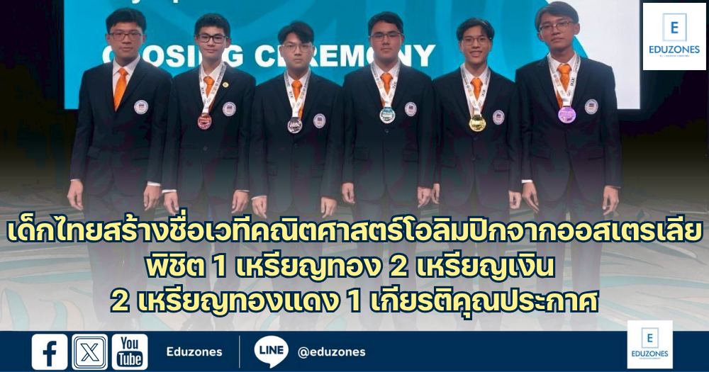EZ Webmaster July 21, 2025 EZ Webmaster July 21, 2025 ทีมเด็กไทยสร้างชื่อเวทีคณิตศาสตร์โอลิมปิกจากออสเตรเลีย พิชิต 1 เหรียญทอง 2 เหรียญเงิน 2 เหรียญทองแดง 1 เกียรติคุณประกาศ รองศาสตราจารย์ ดร.ธีระเดช เจียรสุขสกุล ผู้อำนวยการสถาบันส่งเสริมการสอนวิทยาศาสตร์และเทคโนโลยี (สสวท.) เปิดเผยว่าตามที่ได้คัดเลือกและจัดส่งคณะผู้แทนประเทศไทยไปแข่งขันคณิตศาสตร์โอลิมปิกระหว่างประเทศ ครั้งที่ 66 (The 66th International Mathematical Olympiad – IMO 2025) ระหว่างวันที่ 10-20 กรกฎาคม 2568 ณ เมืองซันไชน์โคสต์ (Sunshine Coast) เครือรัฐออสเตรเลีย มีผู้เข้าร่วมการแข่งขันจำนวน 630 คน จาก 110 ประเทศ ผลปรากฎว่านักเรียนไทยสามารถทำได้ 1 เหรียญทอง 2 เหรียญเงิน 2 เหรียญทองแดง 1 เกียรติคุณประกาศ รายละเอียดดังนี้ นายพัฒนแสง พินิจพิชิตกุล โรงเรียนเตรียมอุดมศึกษา กรุงเทพฯ เหรียญทอง นายดรณ์ สว่างทรัพย์ โรงเรียนเตรียมอุดมศึกษา กรุงเทพฯ เหรียญเงิน นายสิรภพ ขาวพลัด โรงเรียนเตรียมอุดมศึกษา กรุงเทพฯ เหรียญเงิน นายนภนต์ อภินทนาพงศ์ โรงเรียนเตรียมอุดมศึกษา กรุงเทพฯ เหรียญทองแดง นายเกียรติภูมิ สิเจริญ โรงเรียนเซนต์คาเบรียล กรุงเทพฯ เหรียญทองแดง นายกรชวัลร์ ตันติวิเศษศักดิ์ โรงเรียนกำเนิดวิทย์ จ.ระยอง เกียรติคุณประกาศ คณะอาจารย์ผู้คุมทีม ประกอบด้วย ดร.สริตา บุณย์ศุภา บริษัทกรุงเทพดุสิตเวชการ จำกัด หัวหน้าทีม ผศ.ดร.ธีระเดช กิตติภัสสร จุฬาลงกรณ์มหาวิทยาลัย รองหัวหน้าทีม ดร.ศุภณัฐ คำตื้อ จุฬาลงกรณ์มหาวิทยาลัย ผู้ช่วยหัวหน้าทีม นายวีรชัย นีรนาทวงศ์ นักวิชาการอิสระ ผู้ช่วยหัวหน้าทีม ดร.ธนวิทย์ จิรุพันธ์ มหาวิทยาลัยอุบลราชธานี ผู้ช่วยหัวหน้าทีม และ นายจเร ปานเมือง สสวท. ผู้จัดการทีม คณะผู้แทนประเทศไทยคณิตศาสตร์โอลิมปิกจะเดินทางกลับถึงไทยวันจันทร์ที่ 21 กรกฎาคม 2568 สสวท. มีพิธีแสดงความยินดีเวลา 07.00 น.ประตู 1 ชั้น 2 อาคารผู้โดยสารขาเข้า สนามบินสุวรรณภูมิ ติดตามข่าวสารโอลิมปิกวิชาการได้ที่เฟซบุ๊ก Olympic ipst และเว็บไซต์ https://olympic.ipst.ac.th