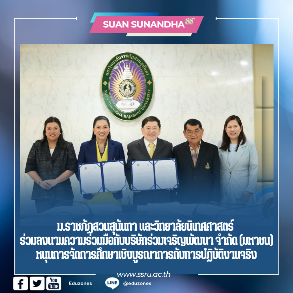 ม.ราชภัฏสวนสุนันทา และวิทยาลัยนิเทศศาสตร์ ร่วมลงนามความร่วมมือกับบริษัทร่วมเจริญพัฒนา จำกัด (มหาชน)หนุนการจัดการศึกษาเชิงบูรณาการกับการปฏิบัติงานจริง
