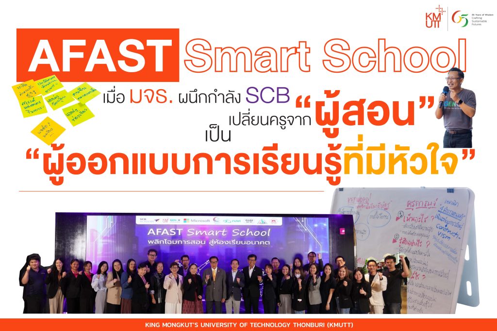 EZ Webmaster August 5, 2025 EZ Webmaster August 5, 2025 AFAST Smart School เมื่อ มจธ. ผนึกกำลัง SCB เปลี่ยนครูจาก “ผู้สอน” เป็น “ผู้ออกแบบการเรียนรู้ที่มีหัวใจ” ในวันที่โลกเปลี่ยนเร็วกว่าเนื้อหาในหนังสือเรียน และเด็กในห้องเรียนเข้าถึงข้อมูลและใช้เทคโนโลยีได้คล่องกว่าครูผู้สอน คำถามสำคัญคือ “การศึกษาจะตามโลกทันได้อย่างไร” และ“ครูยังเป็นเหมือนเดิมได้ไหม ในเมื่อเด็กเข้าถึงความรู้ได้เอง โดยไม่ต้องรอครูสอน” AFAST SMART School เกิดขึ้นจากความเชื่อร่วมกันของหลายองค์กรว่าหากจะพัฒนาคนไทยให้พร้อมเผชิญอนาคต การเริ่มต้นที่ดีที่สุดคือ “เริ่มจากครู” โครงการนี้เป็นความร่วมมือระหว่าง SCB Academy, KX Build ภายใต้สำนัก Knowledge Exchange (KX) มหาวิทยาลัยเทคโนโลยีพระจอมเกล้าธนบุรี และ 7 พันธมิตรสำคัญ ที่มีเป้าหมายในการช่วยพลิกบทบาทของครูไทย จาก “ผู้สอน” ไปสู่การเป็น “ผู้ออกแบบการเรียนรู้ที่มีหัวใจ” เพื่อสร้างนักเรียนที่ทั้งเก่งวิชาการ และมีทักษะพร้อมรับมือโลกยุคใหม่ ทั้งทักษะดิจิทัล การคิดวิเคราะห์ การทำงานเป็นทีม และการเข้าใจตนเอง โครงการนี้มุ่งหวังให้เกิดการเปลี่ยนแปลงใน 3 ประเด็น คือ 1. ปรับกระบวนการสอนที่มุ่งเน้นสมรรถนะ (Competency-Based Learning) 2. บูรณาการเทคโนโลยีและนวัตกรรมเพื่อการศึกษา (EdTech & Innovative Teaching) เพื่อยกระดับคุณภาพการสอน สร้างการเรียนรู้แบบ Active Learning ให้กับนักเรียน และ 3. พัฒนาระบบสนับสนุนและเครือข่ายการเรียนรู้สำหรับครู (Professional Learning Community & Coaching) เพื่อสร้างชุมชนวิชาชีพและระบบโค้ชชิ่งให้ครูได้เรียนรู้และเติบโตไปด้วยกัน จุดแข็งของโครงการจึงไม่ใช่แค่เนื้อหาที่ทันสมัย แต่คือวิธีคิดที่วางรากฐานใหม่ให้ครูไม่ยึดติดกับกรอบเดิม แต่กล้าสร้างประสบการณ์ใหม่ที่สอดคล้องกับบริบทของผู้เรียน ผศ.ดร.ปกรณ์ สุปินานนท์ อาจารย์ประจำวิชาเทคโนโลยีและสื่อสารการศึกษา คณะครุศาสตร์อุตสาหกรรมและเทคโนโลยี มจธ. หนึ่งในทีมจัดกระบวนการเรียนรู้และเป็นที่ปรึกษาด้านการจัดการเรียนรู้ของ KX หรือที่รู้จักในบทบาทของ “ครูแก้ว” ผู้เป็นประธานหลักสูตรของโครงการ AFAST SMART School กล่าวว่า ครูแก้วไม่ได้มองว่าหน้าที่หลักคือการสอนครู แต่คือการเปิดพื้นที่ให้ครูได้ฟังหัวใจตัวเอง และเลือกเดินเส้นทางใหม่ด้วยความเข้าใจ “ครูไทยไม่ได้ขาดความรู้ ไม่ได้ขาดเทคนิค แต่ที่พวกเขาขาดคือแรงบันดาลใจ และพื้นที่ปลอดภัยในการลองผิดลองถูก เราไม่อยากให้โครงการนี้เป็นเพียงแค่การอบรมครั้งหนึ่งแล้วจบไป แต่อยากให้เป็นจุดเปลี่ยนที่ทำให้ครูคนหนึ่ง ‘ลุกขึ้นมาเชื่อในตัวเองอีกครั้ง’ ว่าสิ่งที่เขาทำในห้องเรียนมีความหมาย และสามารถเปลี่ยนอนาคตของเด็กคนหน