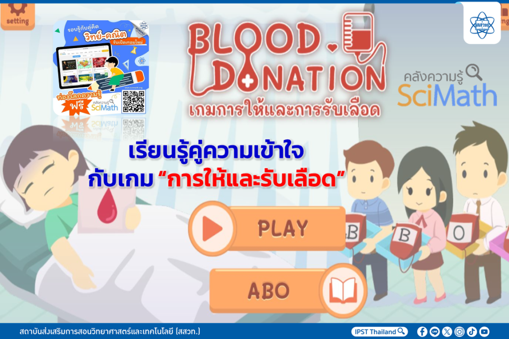 EZ Webmaster August 5, 2025 EZ Webmaster August 5, 2025 เรียนรู้คู่ความเข้าใจกับเกม “การให้และรับเลือด” สถาบันส่งเสริมการสอนวิทยาศาสตร์และเทคโนโลยี (สสวท.) เสริมความเข้าใจให้ชั้นเรียนด้วยสื่อเพื่อการเรียนรู้ แอนิเมชั่นสดใสน่ารัก เกม “การให้และรับเลือด” เกมส่งเสริมการเรียนรู้โดยให้นำเลือดจากผู้บริจาคไปให้ผู้ป่วยให้ถูกต้องตามหลักการให้ และการรับเลือด โดยอธิบายเกี่ยวกับหมู่เลือดระบบ ABO ในมนุษย์ซึ่งสามารถจำแนกตามชนิดของแอนติเจนที่อยู่บริเวณผิวเซลล์เม็ดเลือดแดงได้ 4 หมู่ คือเลือดหมู่ A B AB และ O ทดสอบความเข้าใจพร้อมเฉลยและคำอธิบายเข้าใจง่าย สื่อการเรียนรู้เหมาะกับชั้นมัธยมศึกษาตอนปลายหรือผู้สนใจ ที่คลังความรู้ Scimath สสวท. https://www.scimath.org/desktop-application/item/13007-blood-donation