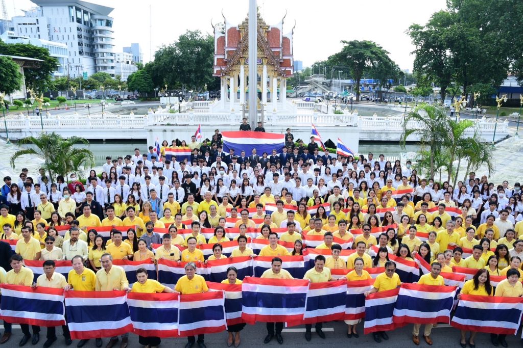 EZ Webmaster August 6, 2025 EZ Webmaster August 6, 2025 มทร.กรุงเทพ จัดกิจกรรมแสดงพลังแห่งความภักดีและความรักชาติ ร่วมร้องเพลงชาติไทย ส่งกำลังใจให้ทหารกล้า เมื่อวันที่ 6 สิงหาคม 2568 ที่มหาวิทยาลัยเทคโนโลยีราชมงคล(มทร.)กรุงเทพ รศ.ดร.พิชัย จันทร์มณี อธิการบดี มทร.กรุงเทพ ได้นำคณะผู้บริหาร บุคลากร และ นักศึกษา มทร.กรุงเทพ เข้าร่วมกิจกรรมแสดงพลังแห่งความภักดีและความรักชาติ “รวมใจราชมงคลกรุงเทพ หนึ่งธง หนึ่งใจ ส่งสู่ทหารไทยผู้กล้า” โดยเวลา 8.00 น. ได้ร่วมกันประกอบพิธีเชิญธงไตรรงค์ขึ้นสู่ยอดเสาอย่างสง่างาม พร้อมรวมพลังกันร้องเพลงชาติไทย เพื่อสะท้อนถึงความเป็นน้ำหนึ่งใจเดียวกันของชาวไทย และร่วมส่งกำลังใจให้กับทหารที่ปฏิบัติหน้าที่อยู่ชายแดน จากนั้น เวลา 10.00 น. ได้จัดกิจกรรมเชิงสัญลักษณ์ เดินขบวนพาเหรดแปรผืนธงชาติไทย เพื่อแสดงออกถึงความเป็นเอกราชของชาติไทย โดยมี ชาติ ศาสนา และพระมหากษัตริย์ เป็นเครื่องยึดเหนี่ยวของคนในชาติ เพื่อดำรงไว้ถึงความเป็นปึกแผ่นของประเทศไทย โดยในกิจกรรมนี้ ผศ.ชัยศักดิ์ คล้ายแดง รองอธิการบดี มทร.กรุงเทพ ได้เป็นผู้แทนมหาวิทยาลัยฯ กล่าวให้กำลังใจถึงทหารชายแดน ว่า “เราขอส่งกำลังใจจากใจกลางแผ่นดิน สู่พี่น้องทหารที่แนวชายแดนไทย – กัมพูชา และขอบคุณในความเสียสละ ขอให้ท่านทุกคนปลอดภัย มีขวัญกำลังใจที่เข้มแข็ง และโปรดรู้ว่าพวกเรายืนอยู่เคียงข้างท่านเสมอ” เสร็จแล้วนำบุคลากรและนักศึกษายืนสงบนิ่งระลึกถึงความเสียสละและสดุดีทหารกล้าที่สละชีพเพื่อชาติ พร้อมปกป้องอธิปไตยและประชาชน นอกจากนี้มทร.กรุงเทพยังจัดพื้นที่ให้บุคลากรและนักศึกษาได้เขียนข้อความแสดงความห่วงใยและส่งกำลังใจถึงทหารและประชาชนในพื้นที่ชายแดน ผ่านกิจกรรม “เขียนความรู้สึกลงบน Post-it” แล้วนำไปติดบอร์ดธงชาติไทย เพื่อมหาวิทยาลัยจะนำข้อความส่งต่อเป็นกำลังใจให้กับทหารผู้กล้าต่อไป