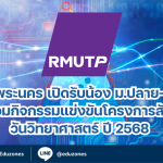 มจพ. สุดปลื้ม! ศ.ดร.วิไล รังสาดทอง คณะวิทย์ มจพ. คว้ารางวัล นักวิจัยดีเด่นแห่งชาติ ประจำปี 2569 ด้านเกษตรฯ รับ 5 แสน! EZ WebmasterDecember 4, 2025 มจพ. สุดปลื้ม! ศ.ดร.วิไล รังสาดทอง คณะวิทย์ มจพ. คว้ารางวัล นักวิจัยดีเด่นแห่งชาติ ประจำปี 2569 ด้านเกษตรฯ รับ 5 แสน! ศ.ดร.วิไล รังสาดทอง คณะวิทยาศาสตร์ประยุกต์ มหาวิทยาลัยเทคโนโลยีพระจอมเกล้าพระนครเหนือ… สสวท. เชิดชูเกียรติ! เปิดทำเนียบ “DPST Hall of Fame 2568” 4 บัณฑิต พสวท. นักวิจัยดีเด่น-ผู้นำพัฒนาวงการวิทยาศาสตร์ไทย EZ WebmasterDecember 3, 2025 สสวท. เชิดชูเกียรติ! เปิดทำเนียบ “DPST Hall of Fame 2568” 4 บัณฑิต พสวท. นักวิจัยดีเด่น-ผู้นำพัฒนาวงการวิทยาศาสตร์ไทย รองศาสตราจารย์ ดร.ธีระเดช เจียรสุขสกุล ผู้อำนวยการสถาบันส่งเสริมการสอนวิทยาศาสตร์และเทคโนโลยี (สสวท.) ประกาศความภาคภูมิใจในการคัดเลือกผู้สำเร็จการศึกษาทุนโครงการพัฒนาและส่งเสริมผู้มีความสามารถพิเศษทางวิทยาศาสตร์และเทคโนโลยี (พสวท.) เข้าสู่หอเกียรติยศ… แนวทางสำหรับครู – 60 วิธีจัดการเรียนรู้เพื่อพัฒนาผู้เรียนอย่างรอบด้าน EZ WebmasterDecember 2, 2025 📚 แนวทางสำหรับครู – 60 วิธีจัดการเรียนรู้เพื่อพัฒนาผู้เรียนอย่างรอบด้าน สำหรับครูและผู้พัฒนาการเรียนรู้ที่ต้องการยกระดับการสอนให้สอดคล้องกับ สมรรถนะผู้เรียนยุคใหม่ วันนี้มีชุดตัวอย่าง “60 วิธีการจัดการเรียนรู้” ที่ครอบคลุมทั้ง ด้านความรู้ (K) ทักษะ/กระบวนการ (P/S) คุณธรรม เจตคติ ค่านิยม… กิจกรรม มทร.ธัญบุรี พร้อมปั้นบัณฑิตสู่ยุค NEXT GEN การันตีความสำเร็จด้วยคลื่นมหาชน tui sakrapeeDecember 4, 2025 มหาวิทยาลัยเทคโนโลยีราชมงคลธัญบุรี (มทร.ธัญบุรี) สร้างปรากฏการณ์ครั้งสำคัญในแวดวงการศึกษาไทยผ่านงาน ‘RMUTT NEXT GEN: Open House 2026 : เปิดประตูสู่ราชมงคลธัญบุรี 69’ เมื่อวันที่ 27 และ 28 พฤศจิกายน 2568… ม.กรุงเทพ จัดงาน The Shape of Tomorrow: Bangkok Art & Architecture @Dib Bangkok tui sakrapeeDecember 4, 2025 คณะสถาปัตยกรรมศาสตร์ มหาวิทยาลัยกรุงเทพ จัดงาน “The Shape of Tomorrow: Bangkok Art & Architecture” เปิดพื้นที่แลกเปลี่ยนองค์ความรู้และประสบการณ์ระหว่างนักวิชาการ ผู้เชี่ยวชาญในวงการสถาปัตยกรรมที่มุ่งเน้นแนวคิดการออกแบบที่ตอบโจทย์ความยั่งยืน (Sustainability) และการปรับใช้พื้นที่อาคารให้เกิดคุณค่าใหม่ (Adaptive Reuse) โดยปรับเปลี่ยนพื้นที่เดิมให้กลายเป็นพื้นที่สร้างสรรค์อย่าง… มหาวิทยาลัยราชภัฏสวนสุนันทา จับมือ “เอ็ม พาวเวอร์ คอร์ปอเรชั่น” ลงนาม MOU ขับเคลื่อนระบบจัดการวัสดุรีไซเคิล สู่มหาวิทยาลัยสีเขียวอย่างยั่งยืน tui sakrapeeDecember 4, 2025 เมื่อวันพฤหัสบดีที่ 4 ธันวาคม 2568 มหาวิทยาลัยราชภัฏสวนสุนันทา จัดพิธีลงนามบันทึกความเข้าใจ (MOU) ร่วมกับบริษัท เอ็ม พาวเวอร์ คอร์ปอเรชั่น จำกัด ณ ห้องประชุมสภามหาวิทยาลัย เพื่อขับ