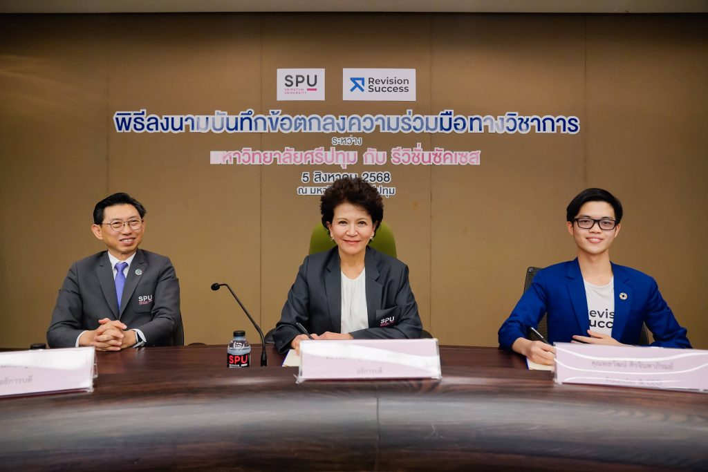 EZ Webmaster August 11, 2025 EZ Webmaster August 11, 2025 SPU หนุนเยาวชน “Revisionsuccess” สร้างนวัตกรรม AI for Education จุดประกายเด็กไทยก้าวสู่ผู้สร้างอนาคต มหาวิทยาลัยศรีปทุม ลงนามบันทึกข้อตกลงความร่วมมือ กับทีมเยาวชน Revisionsuccess ผู้พัฒนาแพลตฟอร์ม AI for Education ซึ่งริเริ่มโดยกลุ่มนักเรียนมัธยมอายุ 16–18 ปี เพื่อร่วมกันผลักดันนวัตกรรมการเรียนรู้สู่ระบบที่รองรับผู้เรียนรุ่นใหม่ โดยเฉพาะ Generation Alpha ที่กำลังจะเข้าสู่รั้วมหาวิทยาลัยในอนาคตอันใกล้ เมื่อวันที่ 5 สิงหาคม 2568 ณ ห้อง Board Room อาคาร 11 มหาวิทยาลัยศรีปทุม บางเขน โดยได้รับเกียรติจาก ดร.รัชนีพร พุคยาภรณ์ พุกกะมาน อธิการบดีมหาวิทยาลัยศรีปทุม และ นายพลวัฒน์ ศิรจินดาภิรมย์ ผู้ก่อตั้งและผู้พัฒนาแพลตฟอร์ม RevisionSuccess ร่วมลงนามในบันทึกข้อตกลง ดร.รัชนีพร พุคยาภรณ์ พุกกะมาน อธิการบดีมหาวิทยาลัยศรีปทุม กล่าวว่า “เราไม่ได้มองว่าเยาวชนต้องรอให้โตเป็นผู้ใหญ่ จึงจะสร้างนวัตกรรมได้ ในทางกลับกัน SPU ต้องการเปิดพื้นที่ให้พวกเขาเริ่มต้นตั้งแต่วันนี้ และพร้อมสนับสนุนให้เติบโตอย่างมีคุณภาพ เราหวังว่าความร่วมมือครั้งนี้จะสร้างแรงบันดาลใจให้เด็กไทยคนอื่น ๆ กล้าลงมือทำ และรู้ว่ามีมหาวิทยาลัยที่พร้อมสนับสนุนพวกเขา” ด้าน นายพลวัฒน์ ศิรจินดาภิรมย์ ผู้นำทีมพัฒนาแพลตฟอร์ม Revisionsuccess กล่าวว่า “พวกเรารู้สึกขอบคุณที่มหาวิทยาลัยศรีปทุมมองเห็นศักยภาพในสิ่งที่เราทำ และเปิดพื้นที่ให้เราต่อยอดสิ่งนี้อย่างจริงจัง เราหวังว่านี่จะเป็นจุดเริ่มต้นที่ทำให้เยาวชนคนอื่น ๆ เห็นว่า ไม่ว่าคุณจะอายุเท่าไร หากคุณมีความตั้งใจและลงมือทำจริง ก็สามารถสร้างนวัตกรรมที่เปลี่ยนแปลงสังคมได้” RevisionSuccess คือแพลตฟอร์มการเรียนรู้ด้วย AI ที่พัฒนาโดยเยาวชนไทย 3 คน ได้แก่ นายพลวัฒน์ ศิรจินดาภิรมย์ ผู้ก่อตั้ง ร่วมด้วย นายภูวดิท สุทธาพร และนายโชติวิทย์ โชติหิรัญศักย์ ผู้ร่วมก่อตั้ง โดยมีเป้าหมายเพื่อช่วยให้นักเรียนสามารถทบทวนเนื้อหา เตรียมสอบ และสร้างองค์ความรู้ได้อย่างมีประสิทธิภาพ แพลตฟอร์มนี้สามารถแปลงเนื้อหาจากเอกสาร วิดีโอ หรือคลิป YouTube ให้กลายเป็น Flashcards, Quiz และแบบฝึกหัดได้โดยอัตโนมัติ พร้อมระบบ AI ที่ปรับเนื้อหาให้เหมาะสมกับผู้เรียนแต่ละคน ทำให้ RevisionSuccess กลายเป็นเครื่องมือที่ตอบโจทย์ทั้งนักเรียนและครูผู้สอนในยุคดิจิทัลอย่างแท้จริง SPU เห็นคุณค่าและศักยภาพของสิ่งที่เยาวชนเริ่มต้น และให้การสนับสนุนอย่างเป็นระบบ ทั้งด้านองค์ความรู้ ผู้เชี่ยวชาญ ทรัพยากรต่างๆ และงบประมาณส่วนหนึ่งเพื่อให้แพลตฟอร์ม Revisionsuccess พัฒนาต่อเนื่องจนสามารถนำไปใช้ได้จริงในโรงเรียนและระบบการศึกษา ทั