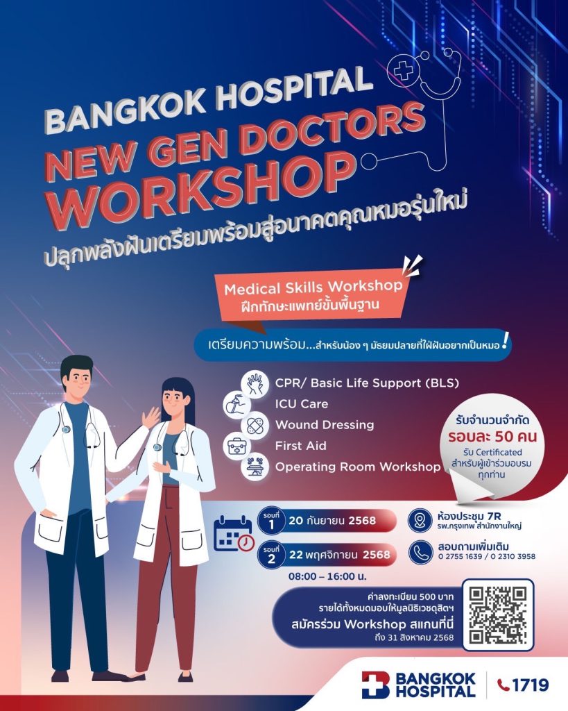 EZ Webmaster August 14, 2025 EZ Webmaster August 14, 2025 Bangkok Hospital New Gen Doctors Workshop 2025 เปิดรับสมัครแล้ว! ปลุกพลังฝัน เตรียมพร้อมสู่อนาคตคุณหมอรุ่นใหม่ Explore. Experience. Become a Doctor โรงพยาบาลกรุงเทพ เปิดประสบการณ์สำหรับเยาวชน ขอเชิญชวนนักเรียนระดับมัธยมศึกษาตอนปลายค้นหาแรงบันดาลใจ สู่วิชาชีพแพทย์ ร่วมกิจกรรมพิเศษ “Bangkok Hospital Doctor Explorer Workshop 2025” ภายใต้แนวคิด Explore. Experience. Become a Doctor เพื่อเปิดโลกการเรียนรู้ในสายวิชาชีพแพทย์อย่างใกล้ชิด พร้อมฝึกปฏิบัติจริงกับทีมแพทย์ผู้เชี่ยวชาญ ณ โรงพยาบาลกรุงเทพ สำนักงานใหญ่ กิจกรรมนี้จัดขึ้นเพื่อจุดประกายแรงบันดาลใจ และให้เยาวชนได้สัมผัสประสบการณ์จริงในห้องปฏิบัติการทางการแพทย์ โดยใช้ศักยภาพของโรงพยาบาลกรุงเทพในฐานะผู้นำด้านสุขภาพระดับสากล พร้อมศูนย์ฝึกจำลองสถานการณ์ทางการแพทย์ BDMS Simulation Center ที่ทันสมัย เพื่อส่งเสริมทักษะและความเข้าใจในบทบาทของบุคลากรทางการแพทย์ได้มากยิ่งขึ้น รายละเอียดกิจกรรม: Bangkok Hospital Doctor Explorer Workshop 2025 🔹 สำหรับนักเรียนระดับมัธยมศึกษาตอนปลาย ระดับชั้น ม.4-6 🔹 เนื้อหา Medical Skills Workshop ประกอบด้วย CPR / Basic Life Support (BLS) (ช่วยชีวิตขั้นพื้นฐาน) Wound Dressing การทำแผล First Aid (พัน, ดาม, ห้ามเลือด) ICU Care (จับชีพจร / ฟังปอด / บีบ Ambu) Operating Room Workshop (ฝึกเย็บแผล) 📅 รุ่นที่ 1: วันเสาร์ที่ 20 กันยายน 2568 📅 รุ่นที่ 2: วันเสาร์ที่ 22 พฤศจิกายน 2568 🕗 เวลา: 08:00 – 16:00 น. 📌 สถานที่: ห้องประชุม 7R ชั้น 7 อาคารเวชศาสตร์ฟื้นฟู โรงพยาบาลกรุงเทพ สำนักงานใหญ่ และ BDMS Simulation Center 👥 รับจำนวนจำกัดเพียงรอบละ 50 คนเท่านั้น! **มีประกาศนียบัตร (Certificated) จากโรงพยาบาลกรุงเทพ สำหรับผู้เข้าร่วมอบรมทุกท่าน** 📍 สมัครได้ตั้งแต่วันนี้ – วันที่ 31 สิงหาคม 2568 📲 สมัครผ่านลิงก์: https://bkhos.co/posZmE 📞 สอบถามเพิ่มเติม ฝ่ายสื่อสารการตลาด รพ. กรุงเทพ: 02-755-1639 หรือ 02-310-3958 หรือ Email: Panruetai.ko@bangkokhospital.com กิจกรรมนี้เป็นส่วนหนึ่งของพันธกิจของโรงพยาบาลกรุงเทพ ในการส่งเสริมการเรียนรู้และการพัฒนาเยาวชน สู่บุคลากรทางการแพทย์ในอนาคต โดยมุ่งหวังให้เยาวชนได้ “ค้นพบตัวตน สร้างแรงบันดาลใจ และเตรียมความพร้อม” แล้วมา “Explore. Experience. Become a Doctor” ก่อนก้าวสู่รั้วมหาวิทยาลัยไปด้วยกัน!