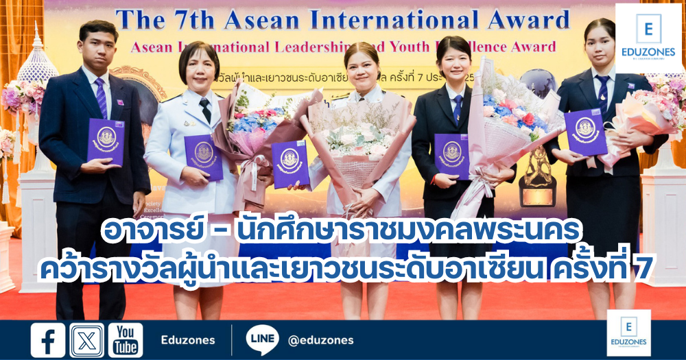 EZ Webmaster August 15, 2025 EZ Webmaster August 15, 2025 อาจารย์ – นักศึกษาราชมงคลพระนคร คว้ารางวัลผู้นำและเยาวชนระดับอาเซียน ครั้งที่ 7 มหาวิทยาลัยเทคโนโลยีราชมงคลพระนคร (ราชมงคลพระนคร) ขอแสดงความยินดีกับ อาจารย์ นักศึกษา เข้ารับรางวัลในงานผู้นำและเยาวชนระดับอาเซียนสู่สากล ครั้งที่ 7 ประจำปี 2568 (The 7th Asean International Award) จัดโดย มูลนิธิคุ้มเกล้าเยาวชนคนสร้างชาติ ร่วมกับ กระทรวงศึกษาธิการ กระทรวงการพัฒนาสังคมและความมั่นคงของมนุษย์ และ สมาคมวัฒนธรรมสยาม ณ หอประชุมคุรุสภา กระทรวงศึกษาธิการ ซึ่งรางวัลที่ได้รับประกอบด้วย รางวัลผู้นำระดับอาเซียนสู่สากล (Asean International Leadership Award) ผศ.ดร.วรัญญา แก้วเชือกหนัง อาจารย์ประจำสาขาวิชาการจัดการ คณะบริหารธุรกิจ สาขาผู้นำแห่งความสำเร็จด้านการบริหารภาครัฐ, บริหารสถานศึกษาดีเด่นในอาเซียนสู่สากล ผศ.ดร.ศิริรัตน์ พ่วงแสงสุข อาจารย์ประจำหลักสูตรสาขาวิชาการบัญชี คณะบริหารธุรกิจ สาขาผู้นำแห่งความสำเร็จด้านผลงานวิชาการ, เทคโนโลยี, คอมพิวเตอร์, วิศวกรรม ดีเด่นในอาเซียนสู่สากล ในส่วนรางวัลเยาวชนผู้มีความเป็นเลิศระดับอาเซียนสู่สากล (Asean International Youth Excellence Award) นางสาวจุฑามาศ พรั่งพิบูลย์ นักศึกษาสาขาวิชาการบัญชี คณะบริหารธุรกิจ สาขาเยาวชนผู้มีความเป็นเลิศด้านจิตอาสา สังคมสงเคราะห์ ในอาเซียนสู่สากล นายธนายุทธ คำภากุล นักศึกษาสาขาวิชาภาษาไทยประยุกต์ คณะศิลปศาสตร์ สาขาเยาวชนผู้มีความเป็นเลิศด้านวิชาการ ในอาเซียนสู่สากล เพื่อยกย่อง ส่งเสริม และสร้างขวัญกำลังใจในการมีส่วนร่วม การพัฒนาสังคมและประเทศชาติ และนางสาวศิริรัตน์ บุบผากลิ่น นักศึกษาสาขาวิชาออกแบบแฟชั่นและสิ่งทอ คณะอุตสาหกรรมสิ่งทอและออกแบบแฟชั่น สาขาเยาวชนผู้มีความเป็นเลิศด้านศิลปะการแสดงในอาเซียนสากล ทั้งนี้ภายในงานได้รับเกียรติจาก พลเอกจรัล กุลละวณิชย์ เป็นประธานในการมอบโล่เกียรติยศ ณ หอประชุมคุรุสภา กระทรวงศึกษาธิการ เมื่อวันที่ 10 สิงหาคม 2568